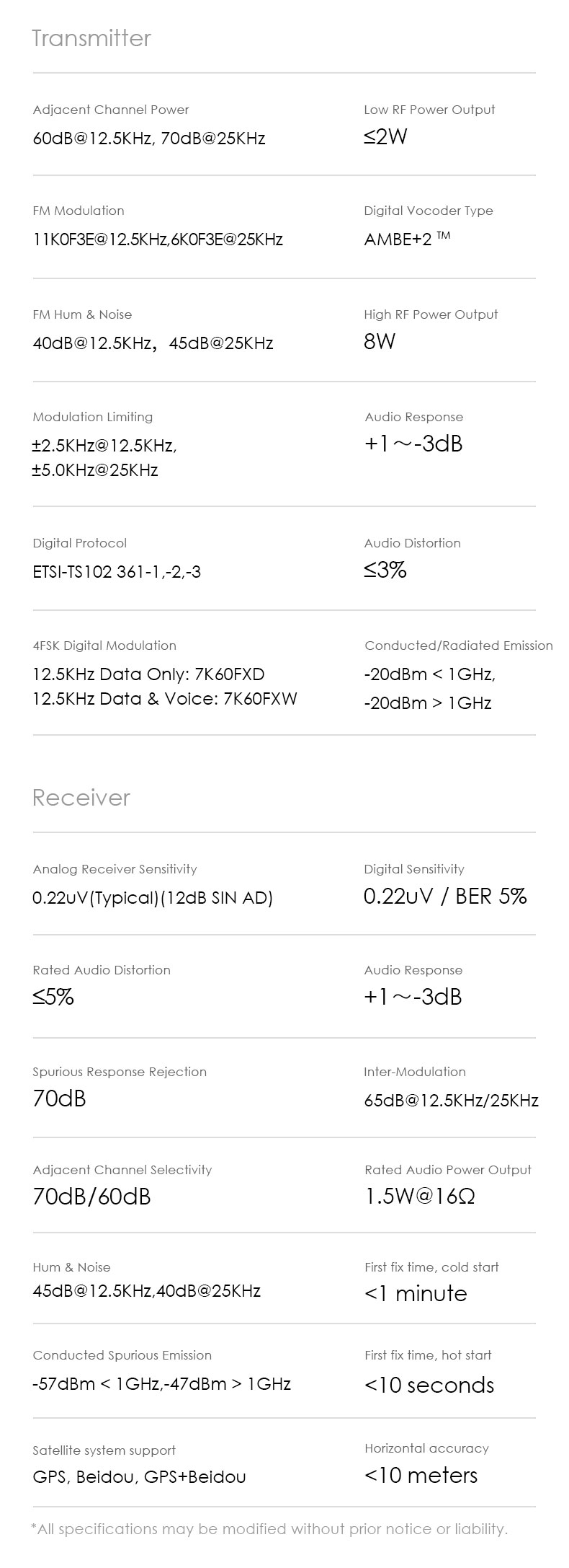 Channel Spacing: 25.0KHz(Wide)/12.5KHz (Narr)