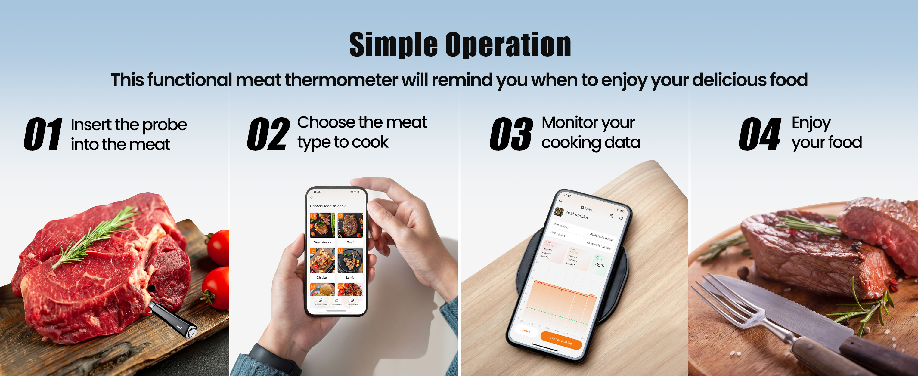 The app includes 26 meat menus with USDA-recommended cooking temperatures, making it easy to create a cooking program.