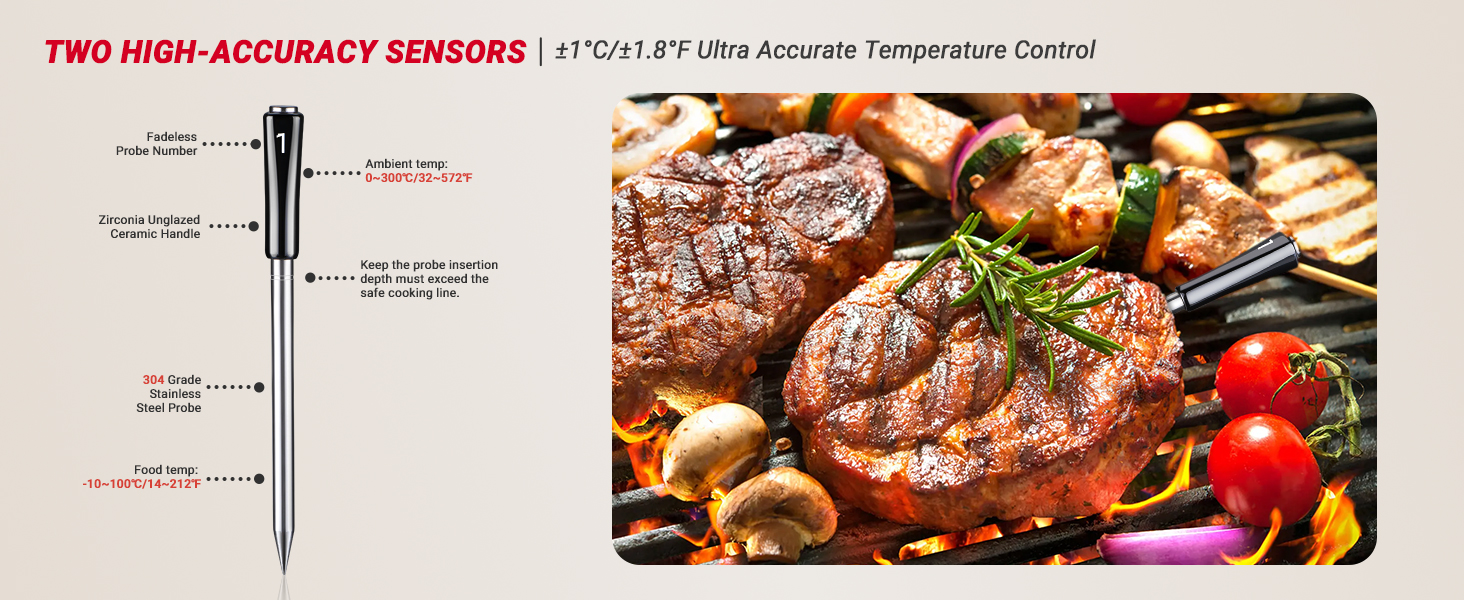 Each probe is fully charged in just 25 minutes and lasts an incredible 25 hours! This outstanding device is the perfect tool for monitoring meat temperatures around the clock, making it an indispensable aid for long-term cooking, such as smoking high-quality smoked meats and hams.