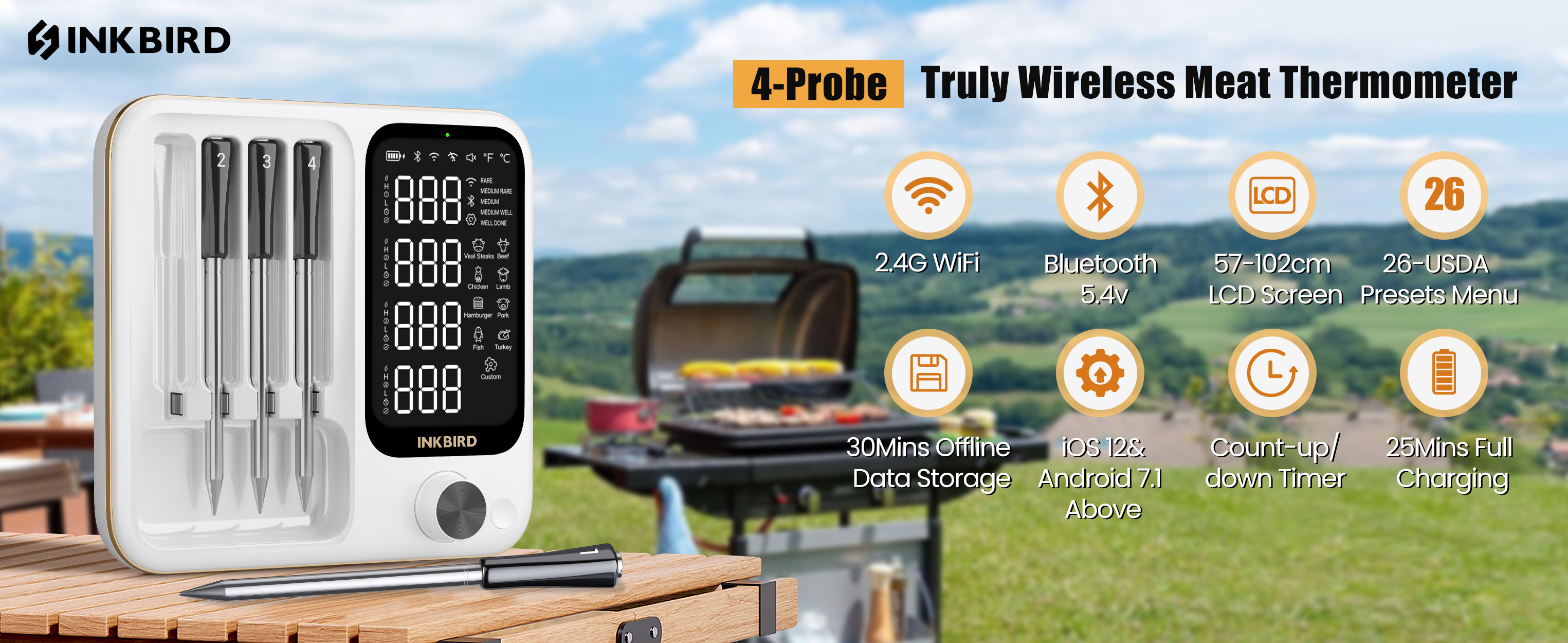 The INT-14-BW is the first grill thermometer with 2.4 GHz Wi-Fi, Bluetooth 5.4, and local offline functionality. This device is the result of INKBIRD's tireless commitment to excellence and the high expectations of our valued INKBIRD customers.