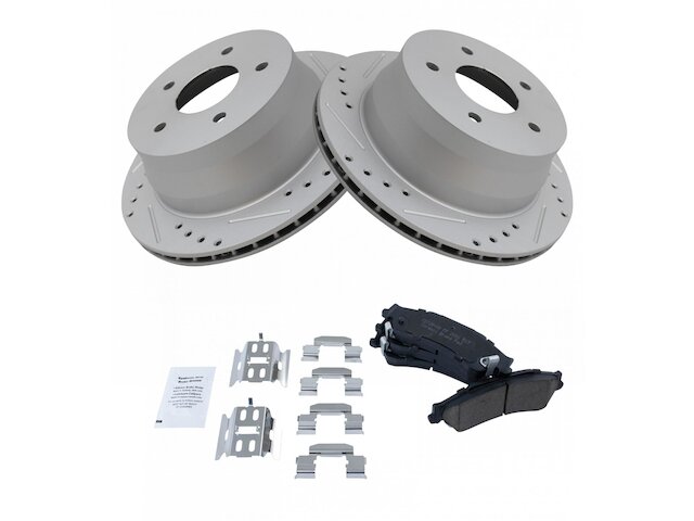 Package Contents: (1) Rear Ceramic Brake Pad Set; (1) Rear Premium G-Coated Performance Brake Rotor Set