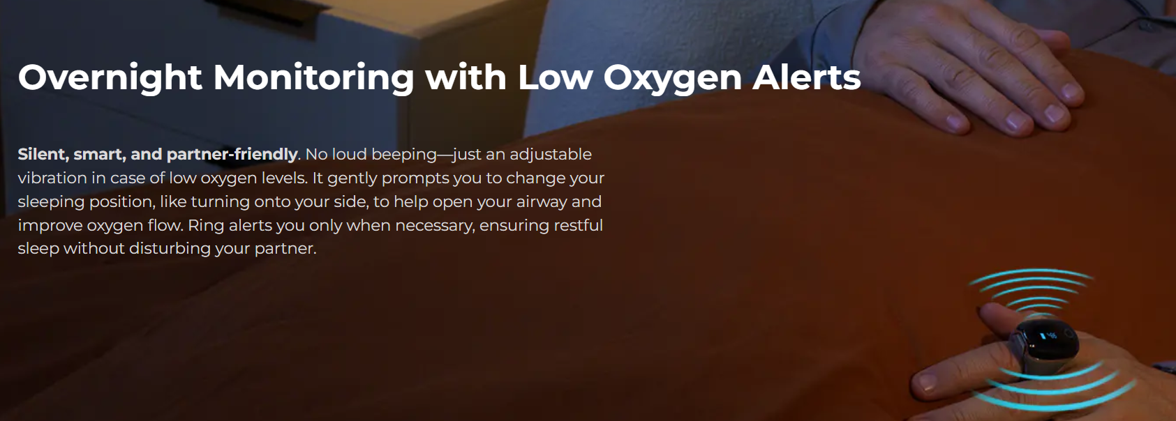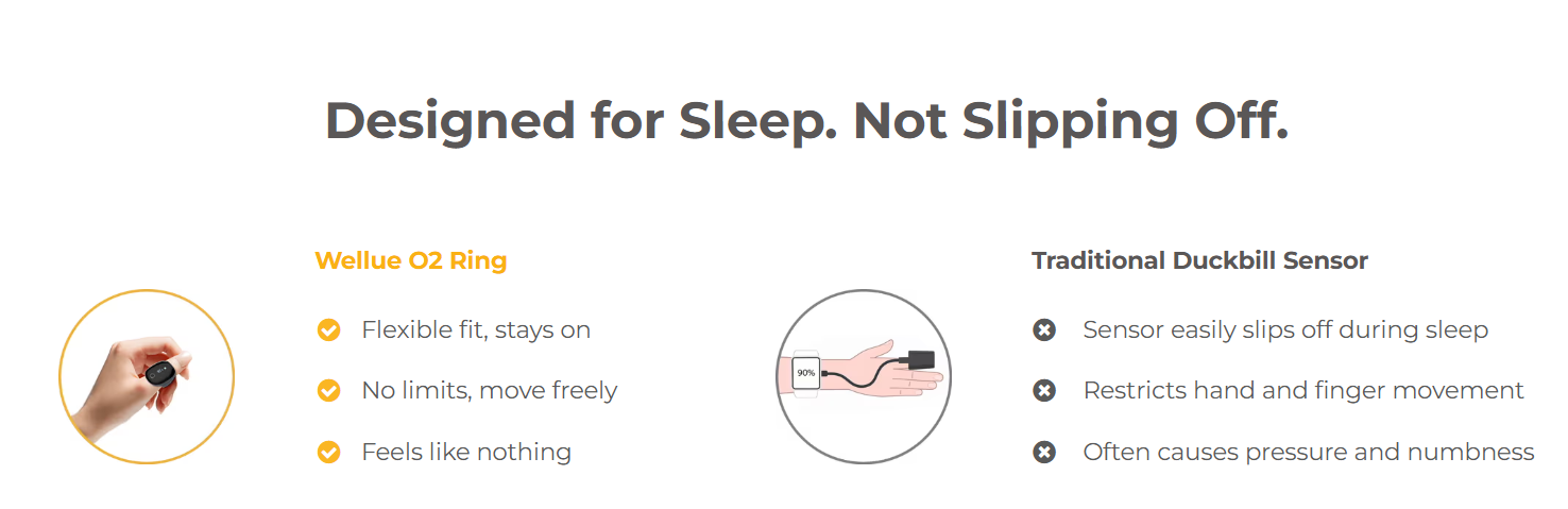 Wear our O2Ring while you sleep, and it will quietly collect data, with a 98% effective detection rate for sleep apnea.