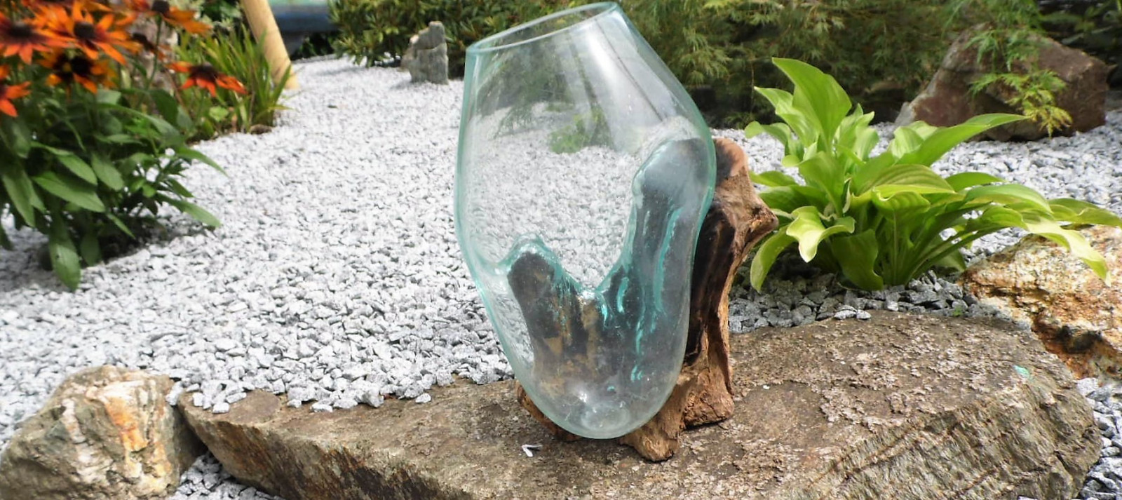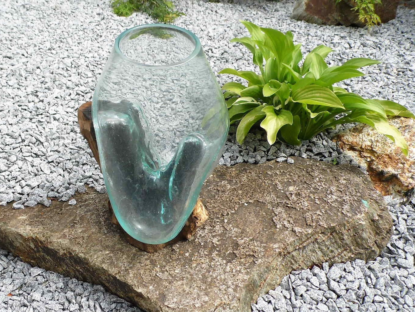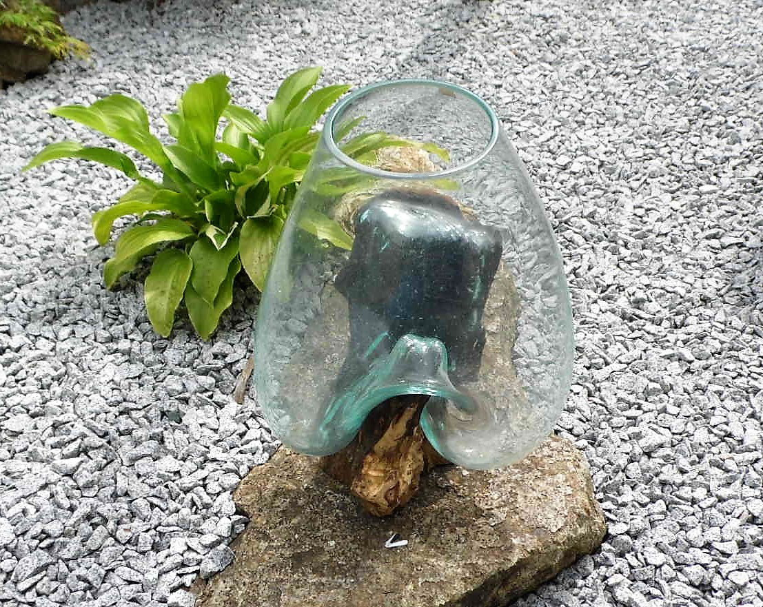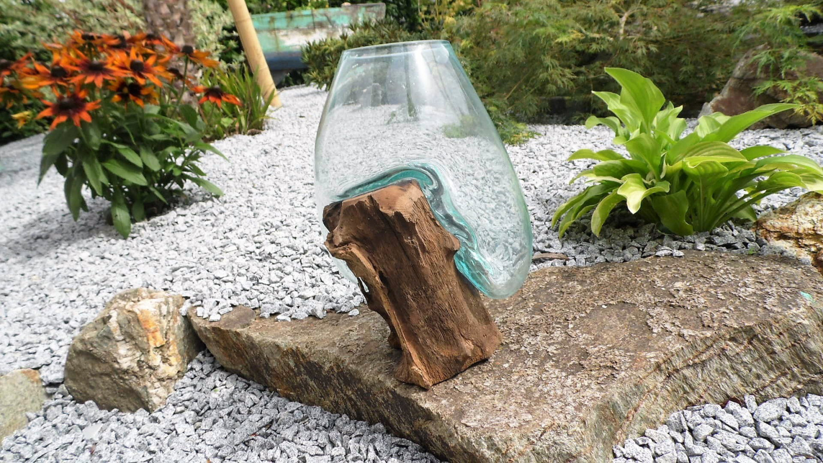 Das mundgeblasene Glas auf der Wurzel ist offen für viele kreative Deko-Ideen.