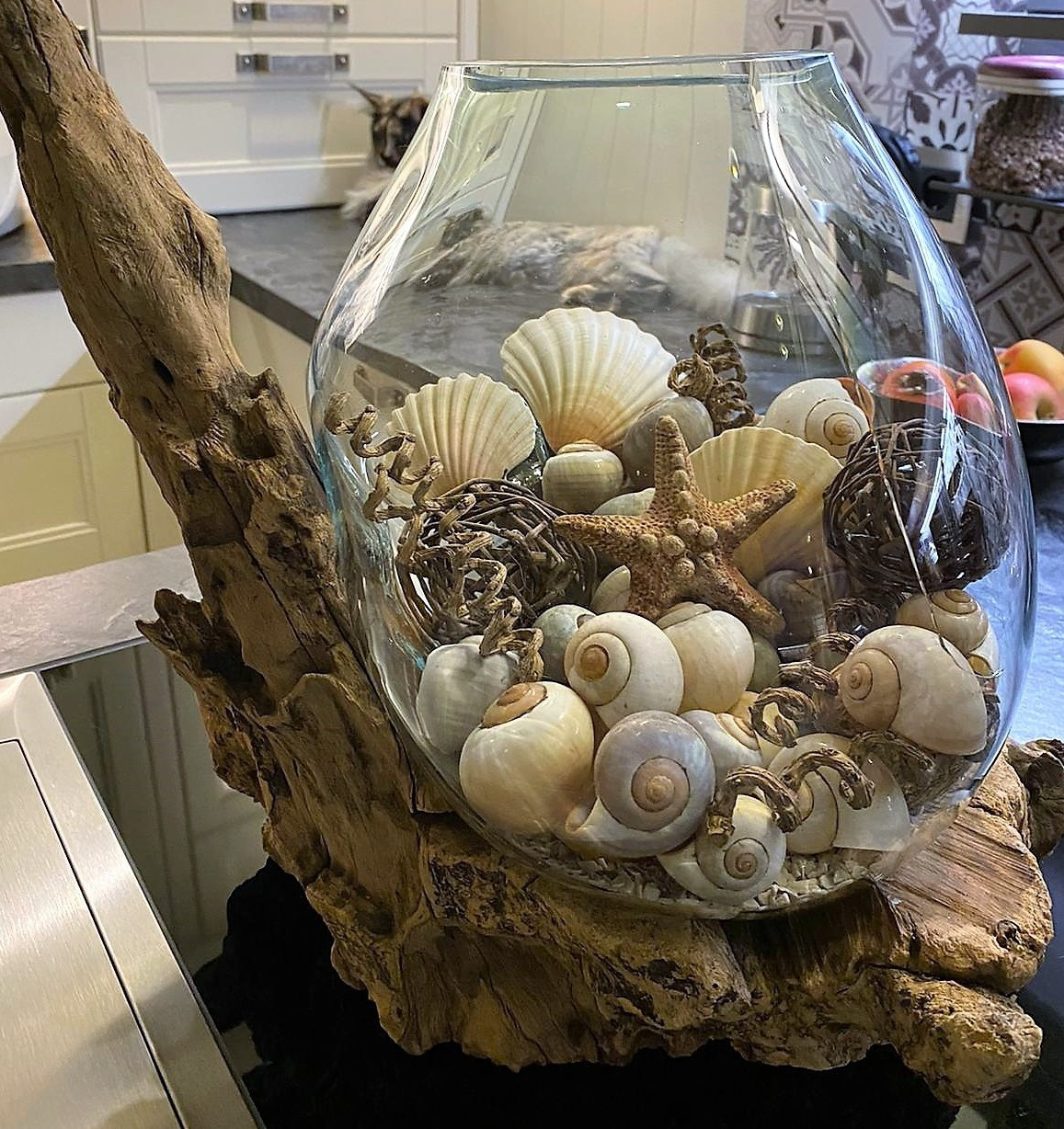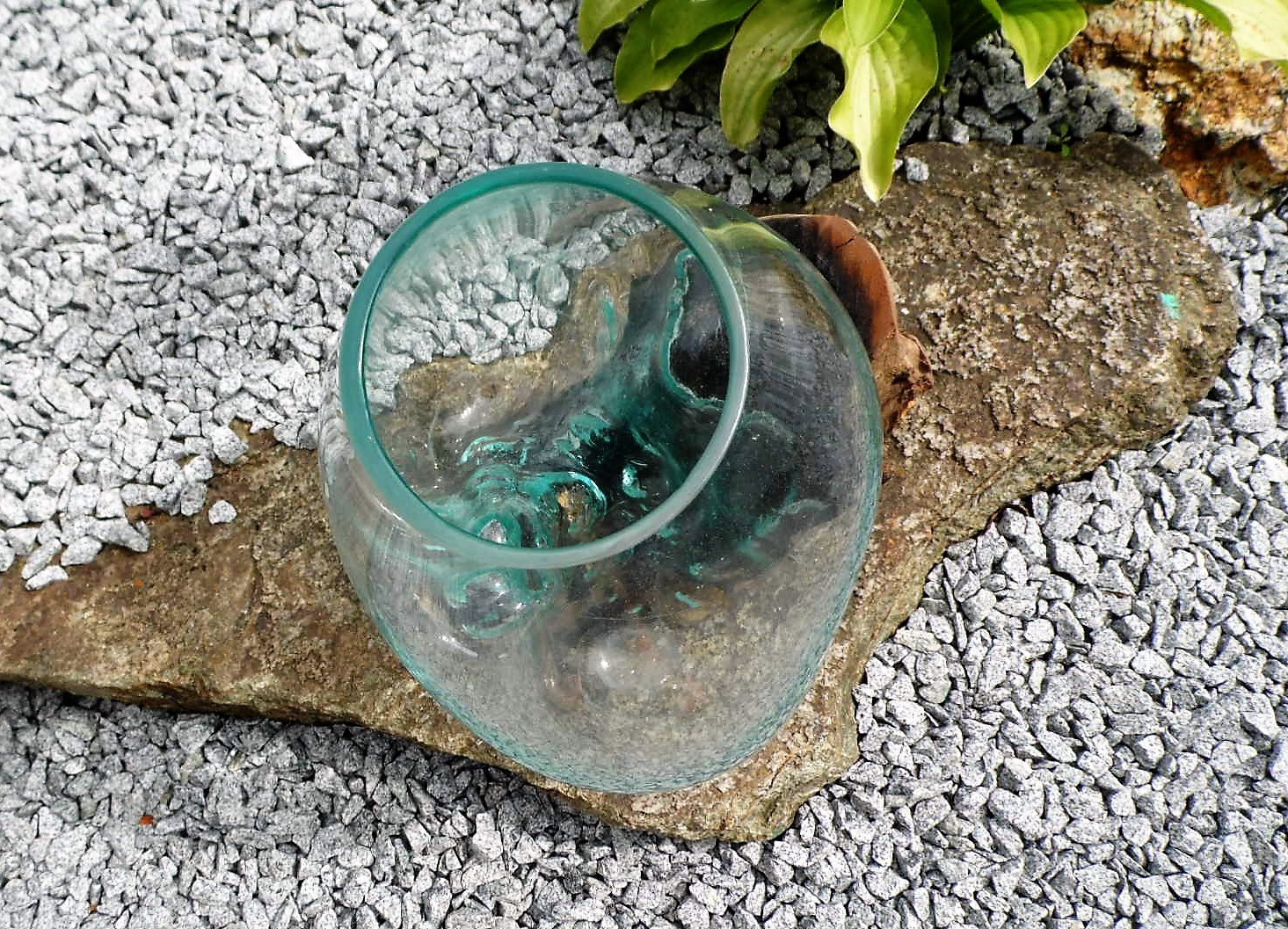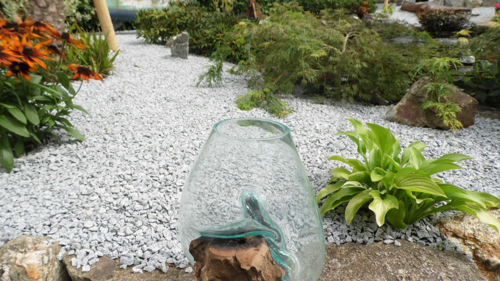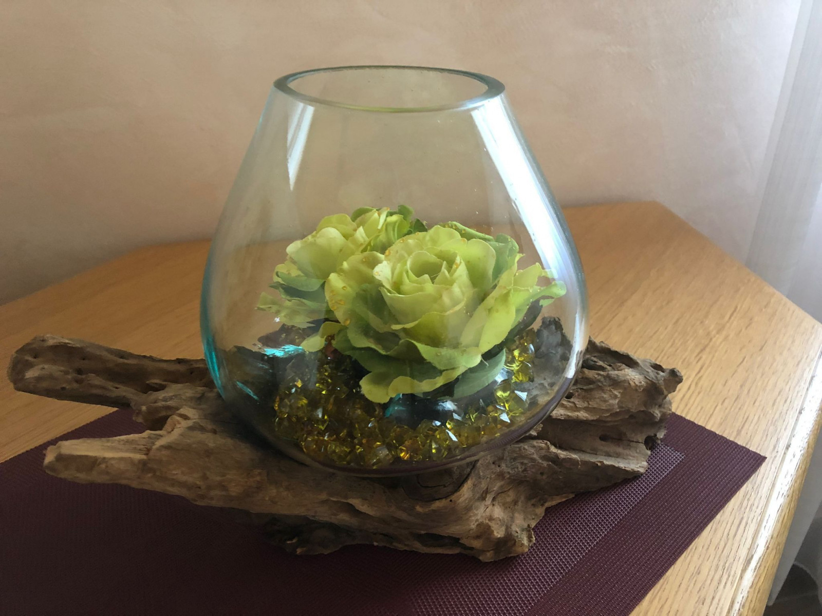 Das mundgeblasene Glas auf der Wurzel ist offen für viele kreative Deko-Ideen.