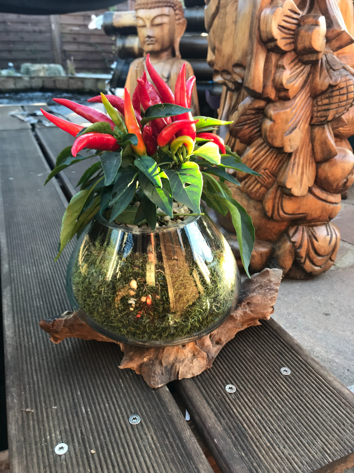 Auch als Vase ist das Dekoglas im Wurzelbett ein Eyecatcher, der garantiert bewundernde Blicke ernten wird.