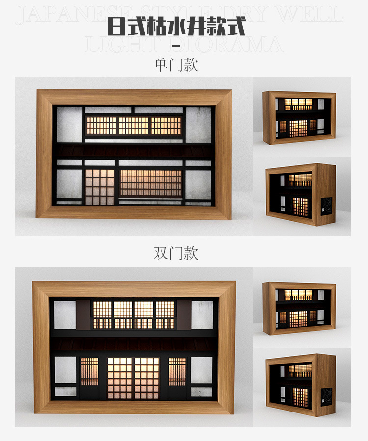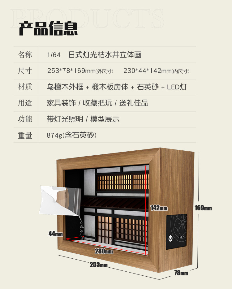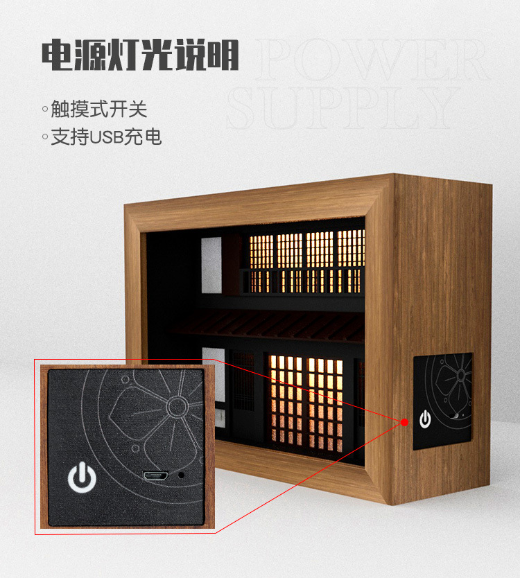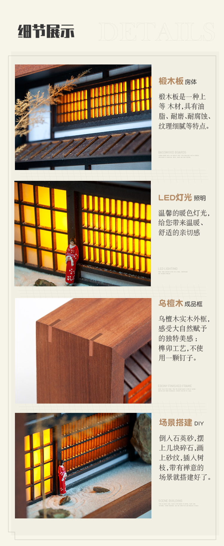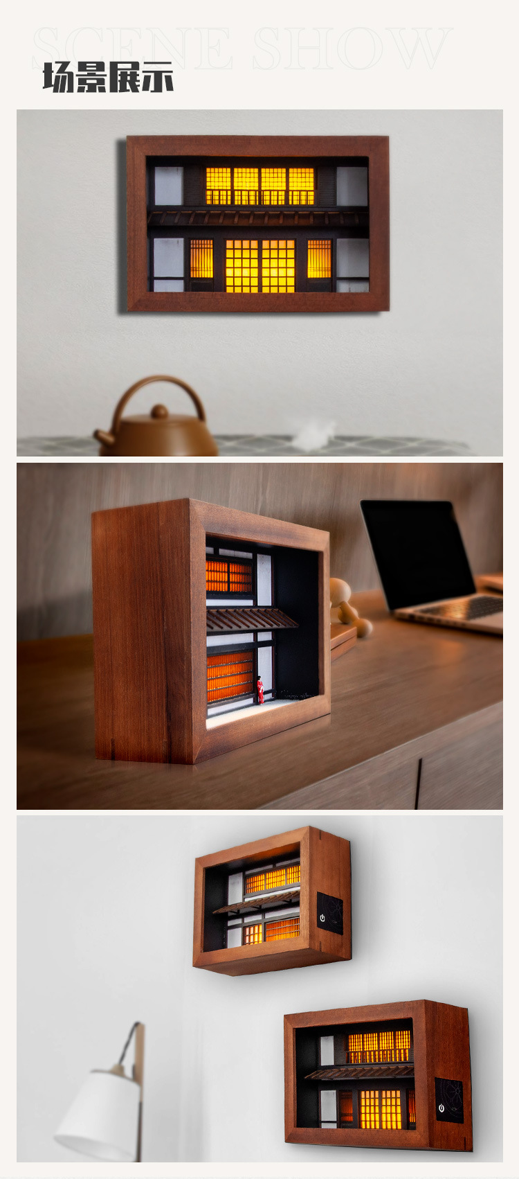 Japanese-style architectural painting model, simple lighting, home decoration, sandalwood