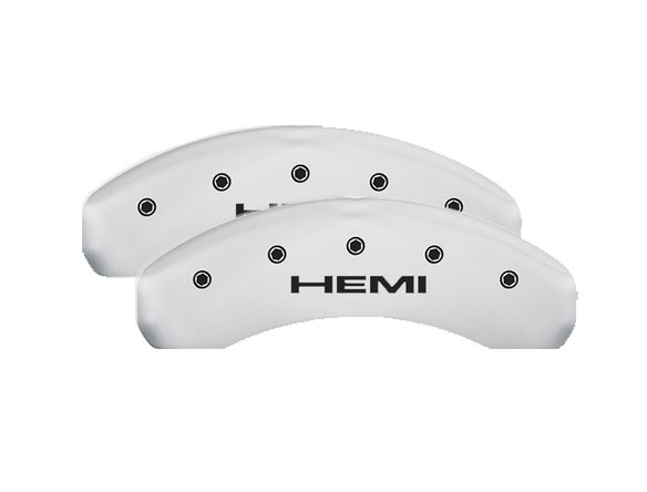 2022-2025 Ram 1500 Front + Rear White MGP Brake Disc Caliper Covers "HEMI" 4pc