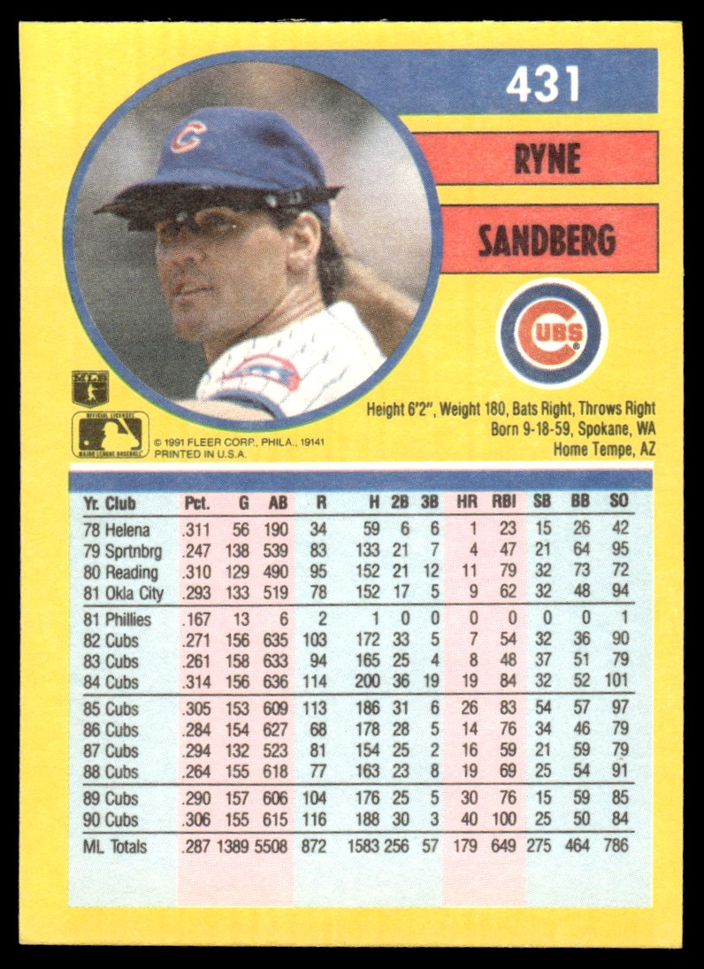 | 1991 Fleer Ryne Sandberg #431 |
