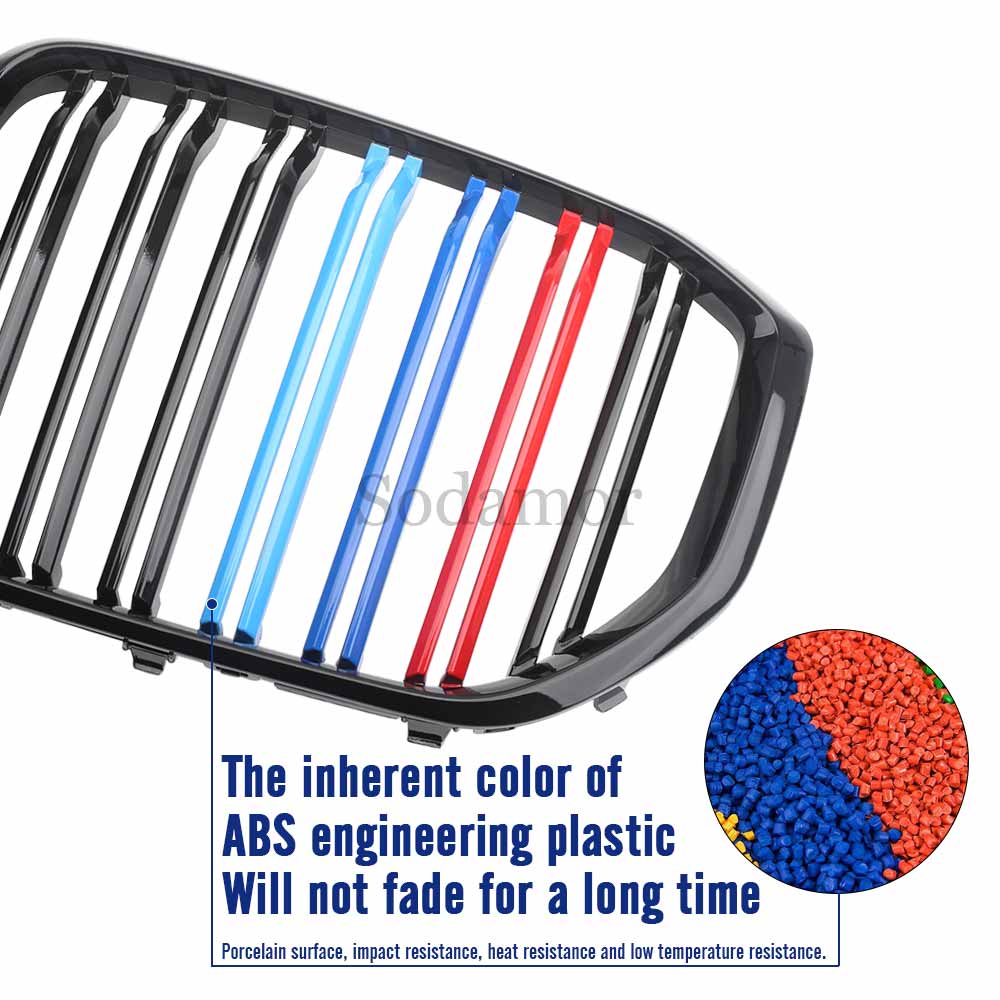 The dual panel design seamlessly blends with your existing car design,Three-color mixed color , It makes your car look sportier like a performance car,brings you a unique and modern aesthetic. This high-quality grille perfectly combines form and function, enhancing your driving experience. This grille is the perfect replacement for your worn out or damaged factory grille.