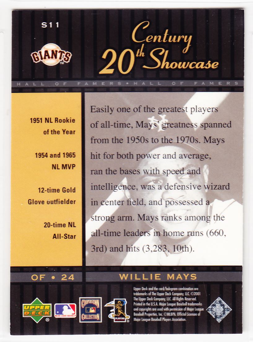 | 2001 Upper Deck Hall of Famers Willie Mays 20th Century Showcase Insert New York | ||||||||||||||||