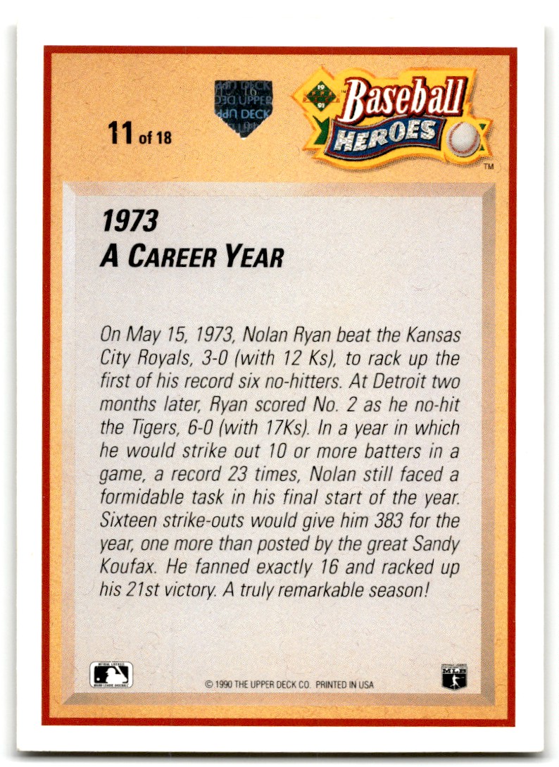 | 1991 Upper Deck Baseball Heroes Nolan Ryan Nolan Ryan California Angels #11 | ||||||||||||||||