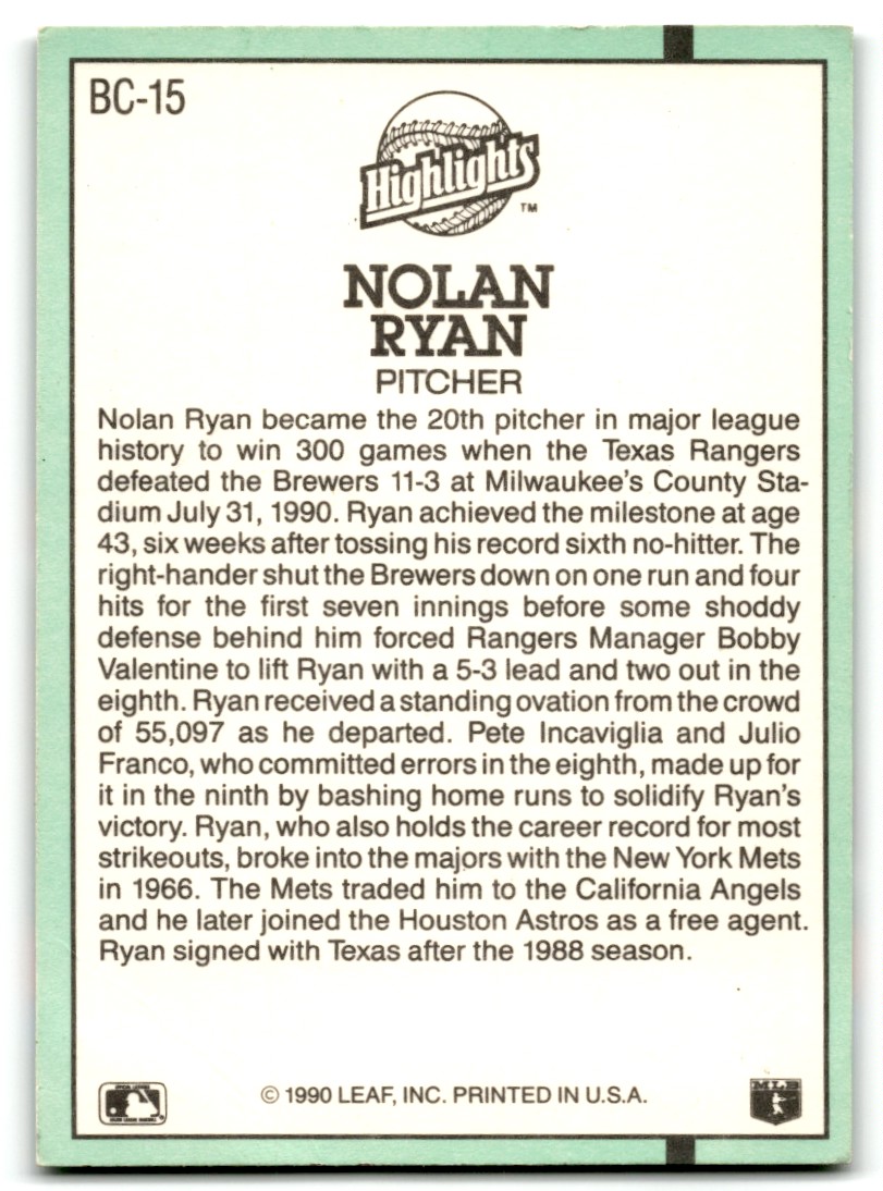 1991 Donruss Bonus Cards Nolan Ryan Texas Rangers #BC-15