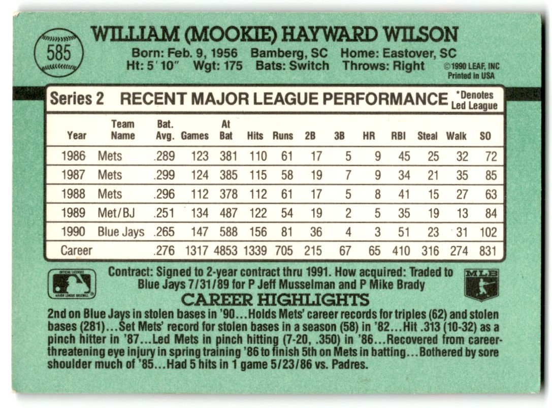 1991 Donruss Mookie Wilson Toronto Blue Jays #585