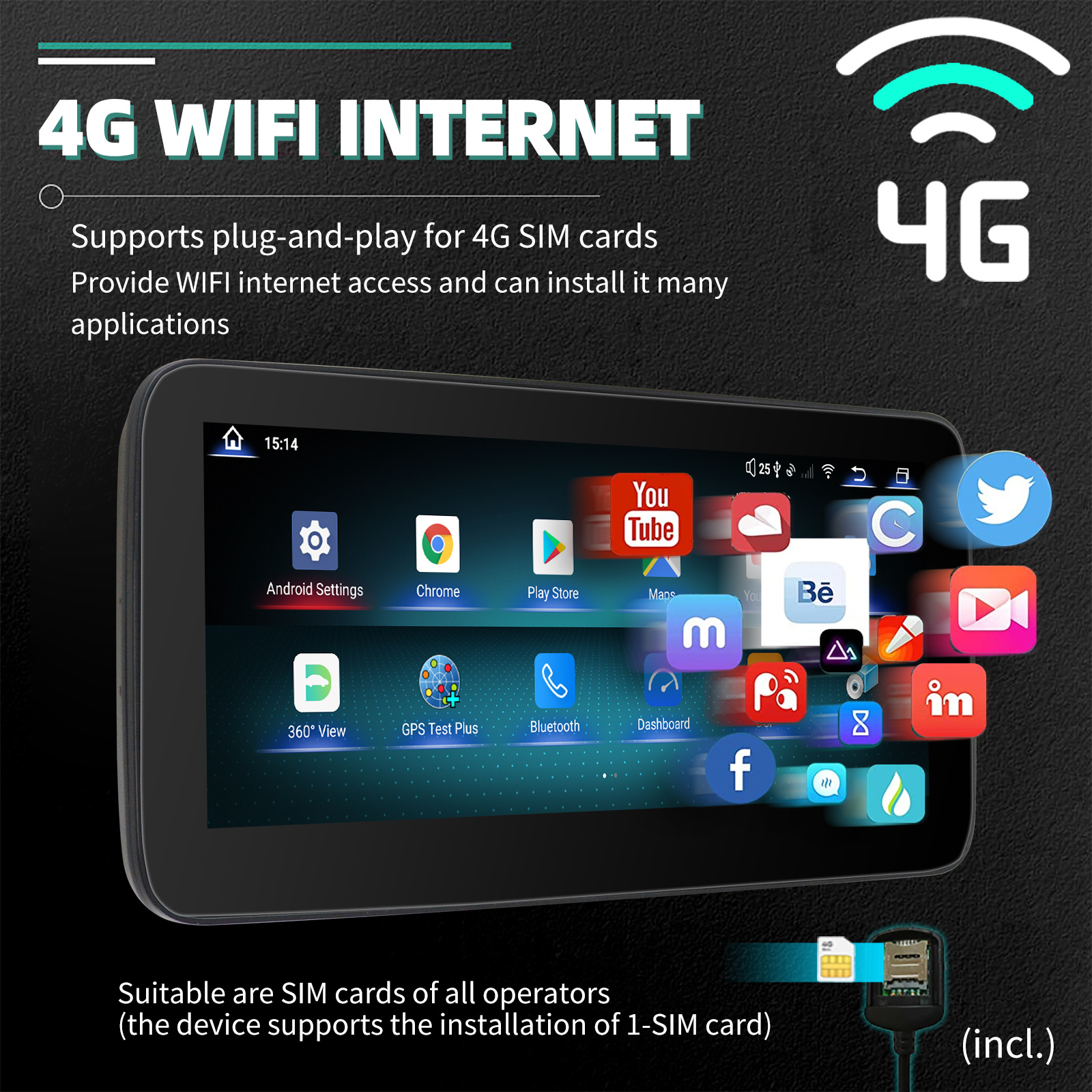 - Built-in 4G and WIFI Module for internet, just insert your 4G SIM Card, no matter where you are driving, you will enjoy the fun from internet surfing , make it possible for online navigation/ music /movie ect.
