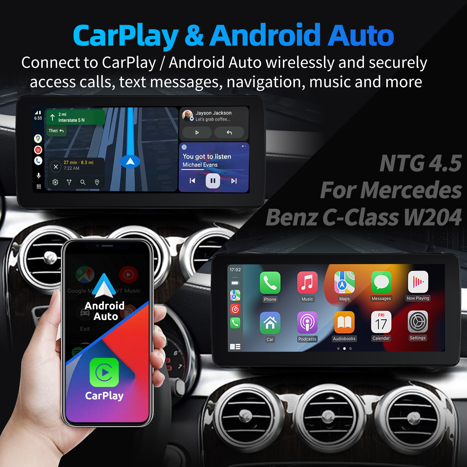 10.25 Inch Android 14 Car Stereo For Benz C Class W204 2011-2014(NTG4.5): The radio comes with the latest Android 14 operating system, integrated with 6GB RAM + 128GB ROM, allowing you to experience faster, smoother, and smarter navigation applications.