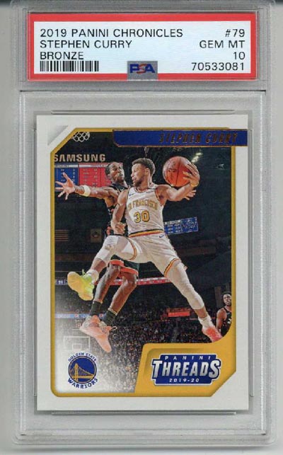 STEPHEN CURRY 2019 PANINI CHRONICLES THREADS BRONZE PSA 10 BASKETBALL CARD