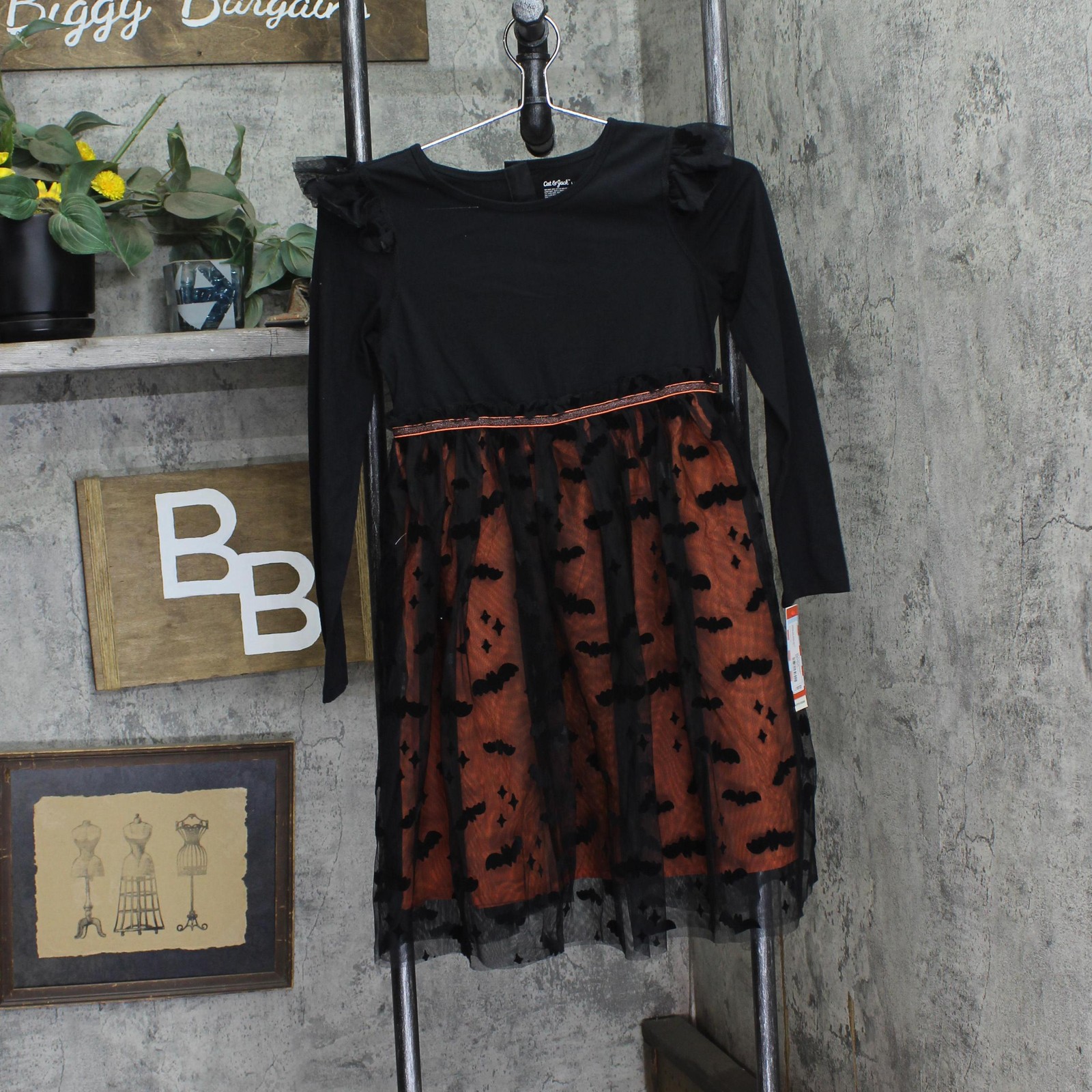 1. Cat & Jack Girls Adaptive Long Sleeve Halloween Tulle Dress Black / Orange L