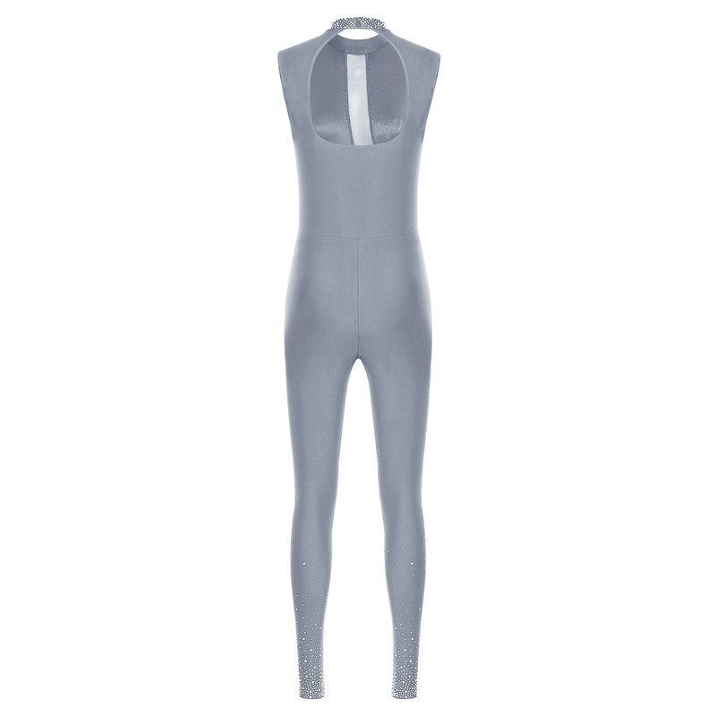 The glittery rhinestones add a glamorous and eye-catching touch, making the jumpsuit stand out in the trendy fashion scene.