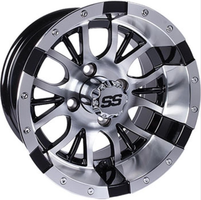 Depending on the machine your stock lug nuts may not work with this wheel. They MAY require a different style lug nut that we offer) Center cap included.