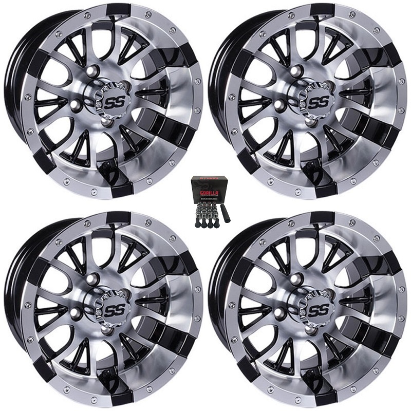 - (4) GTW Diesel 14x7 Golf Cart Wheels - Machined/Black (4/4) 3+4 [19-247]