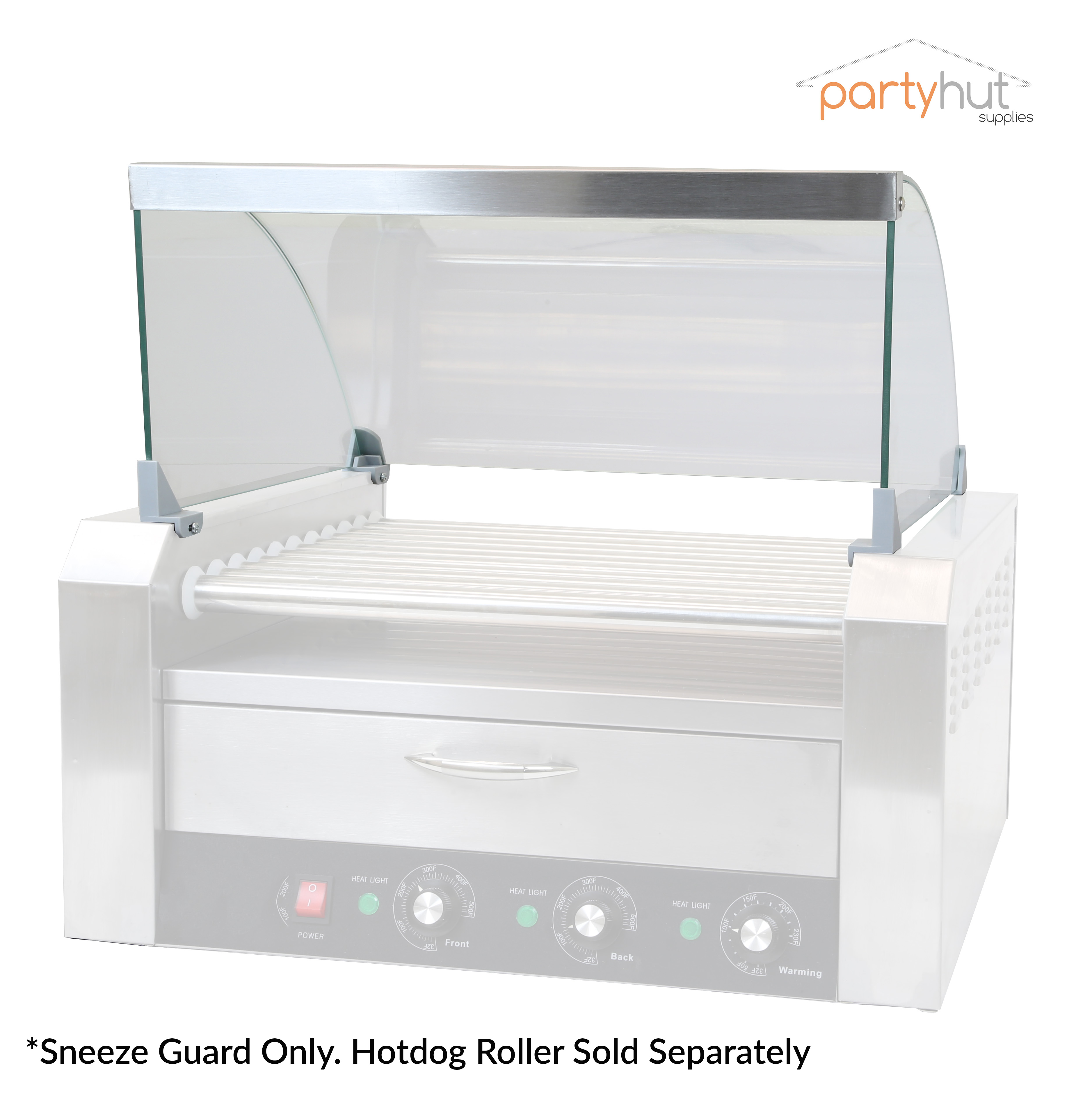 The PartyHut Hotdog Roller Sneeze Guard is a must have for your Cotton Candy machine Hotdog Roller! The clear shield provides access to the rollers/hotdogs for the person serving, but it also shields the cooking chamber from dust,bugs, dirty hands, and airborne particles. Installation is simple and can be completed in a few simple steps in a matter of a few minutes. Our sneeze guard is compatible with PartyHut hotdog rollers as well as Clevr hotdog rollers.