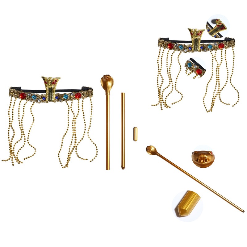 The detachable design of the snake scepter and beaded tassel headwear offers versatility, allowing you to mix and match according to your costume style.