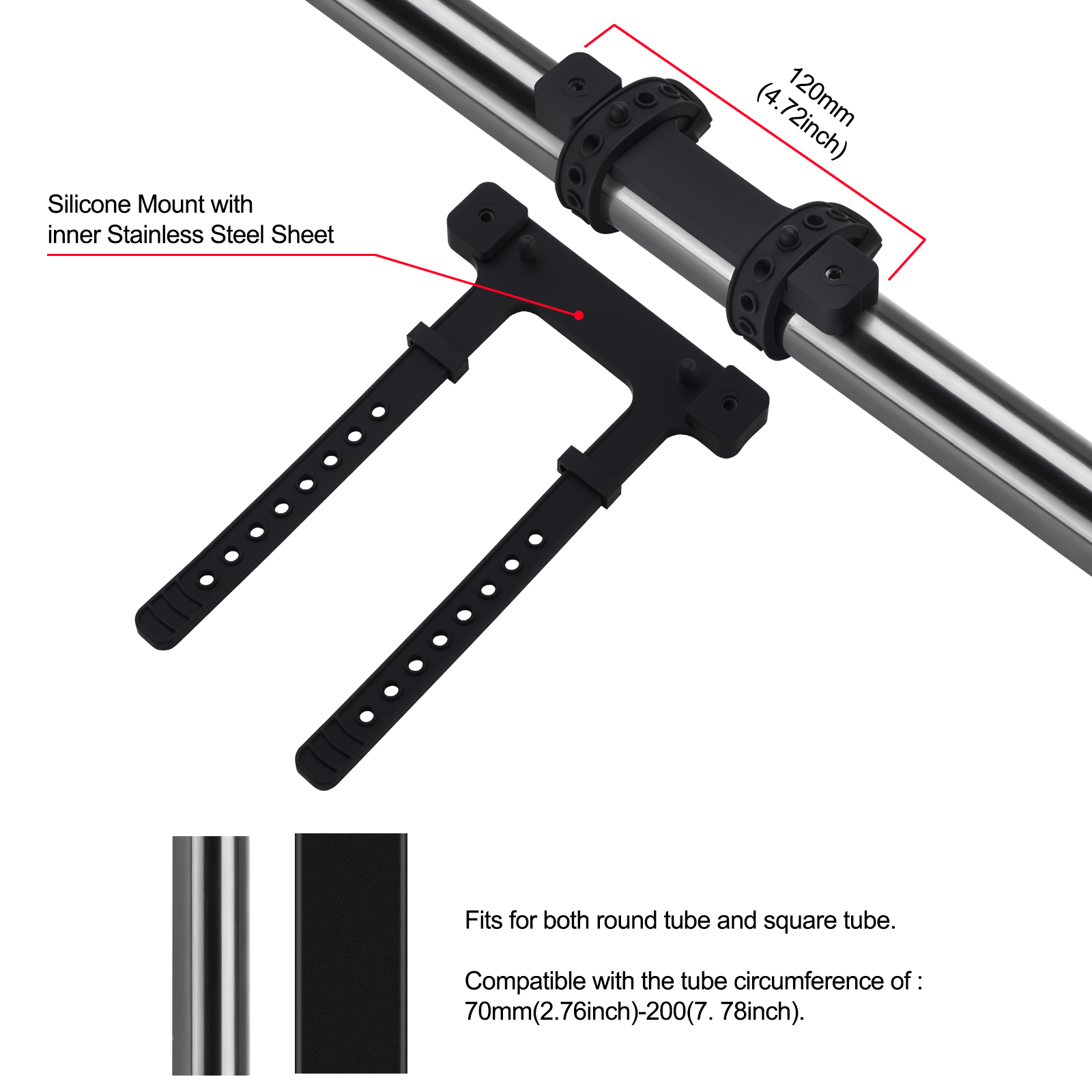 Note: Pipe circumference compatible with 70mm (2.76 inches) to 200mm (7.78 inches) round or square pipes.