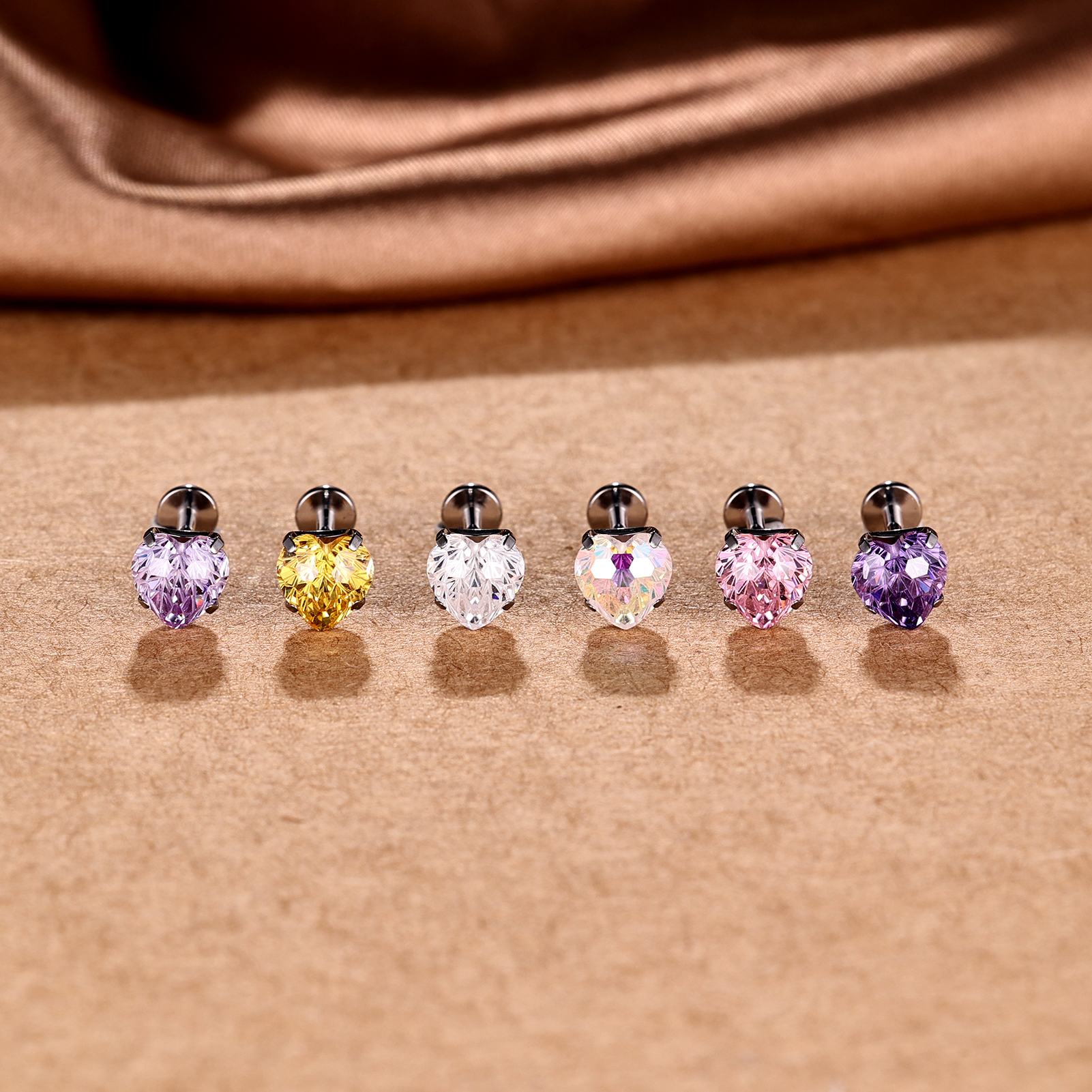 6 Pairs Stainless Steel Stud Earrings Heart Moon Star CZ Crystal Helix Piercing
