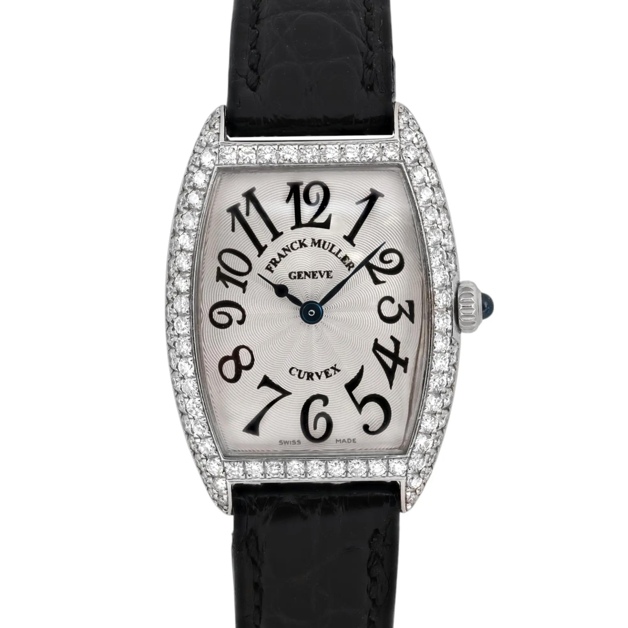 Franck Muller Curvex 25mm 18K White Gold Diamond Silver Dial Watch 1752 QZ D