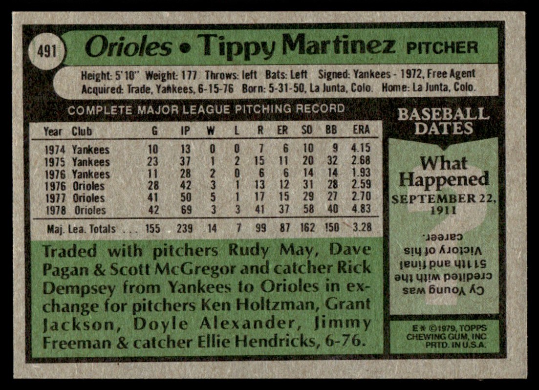| 1979 Topps Tippy Martinez Baltimore Orioles #491 | ||||||||||||||||