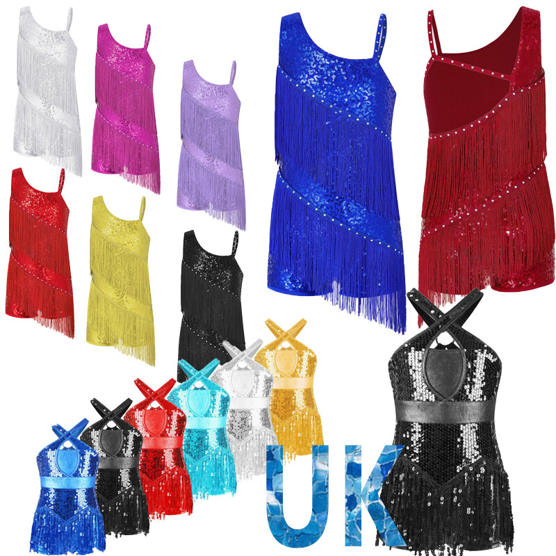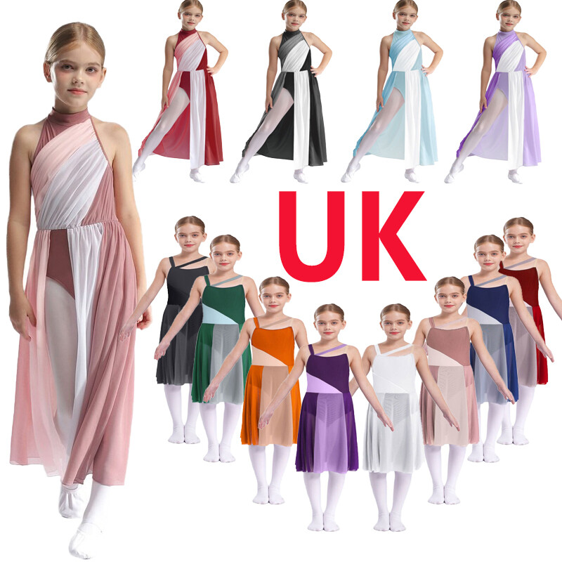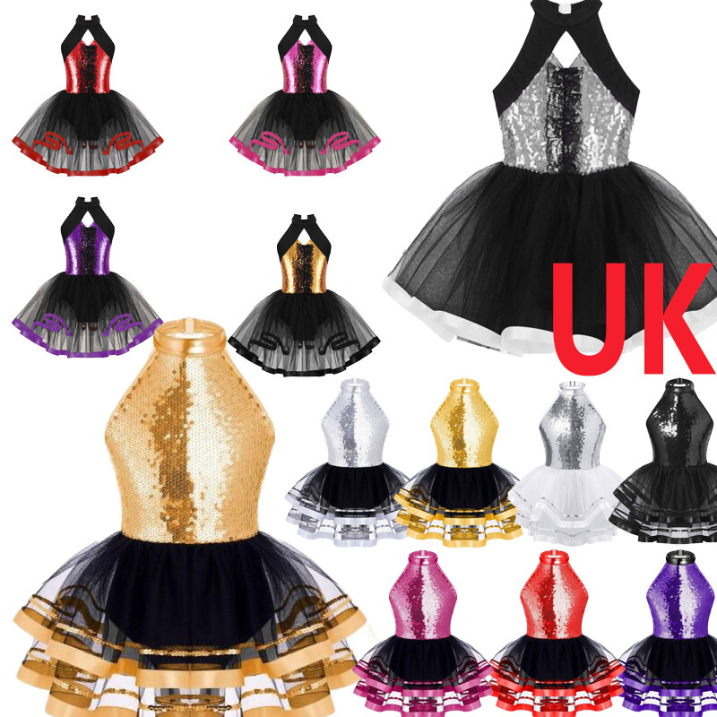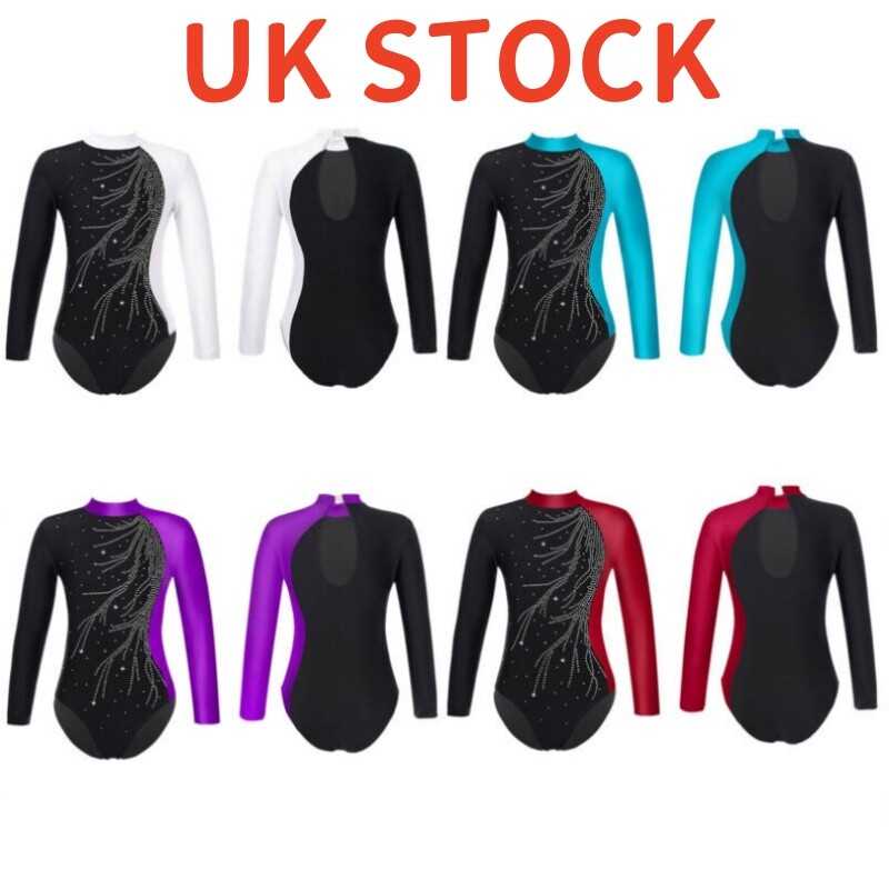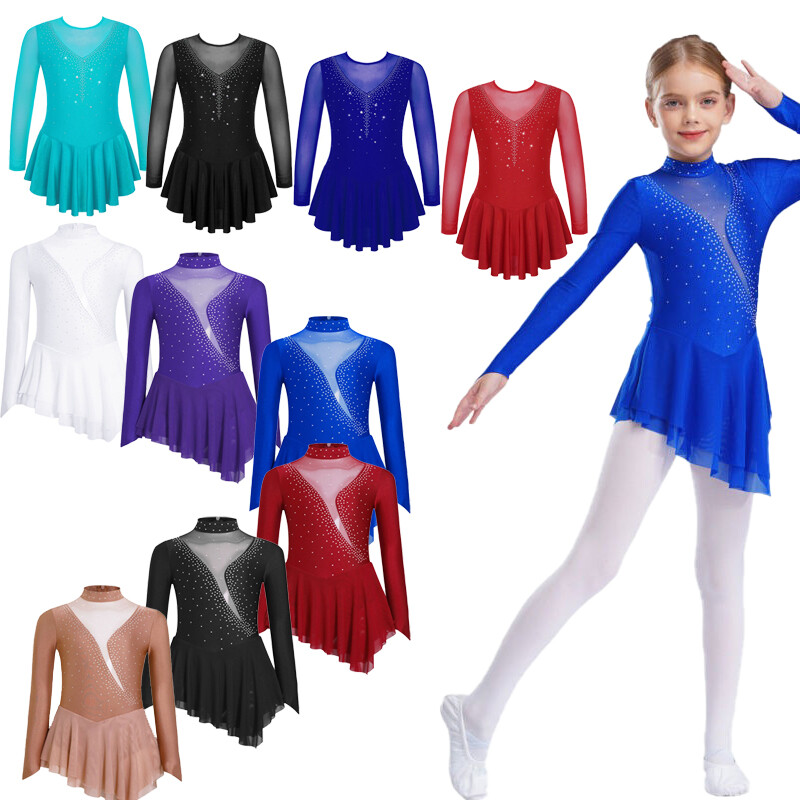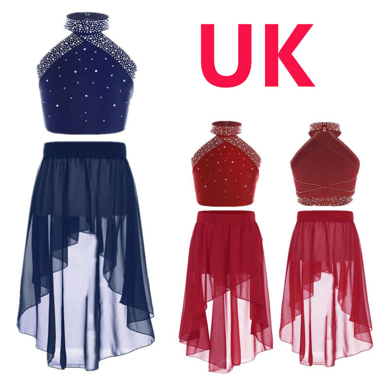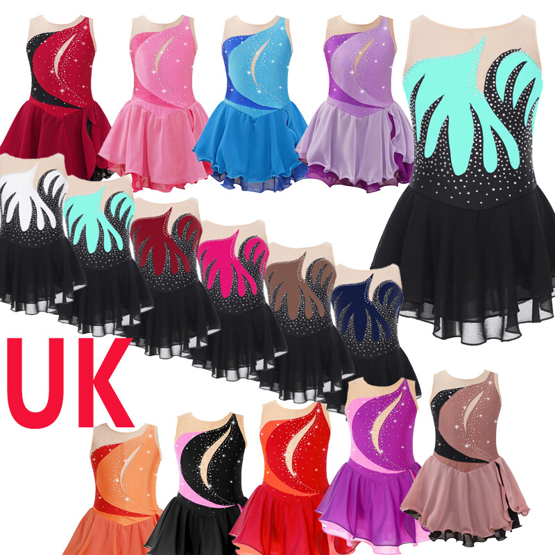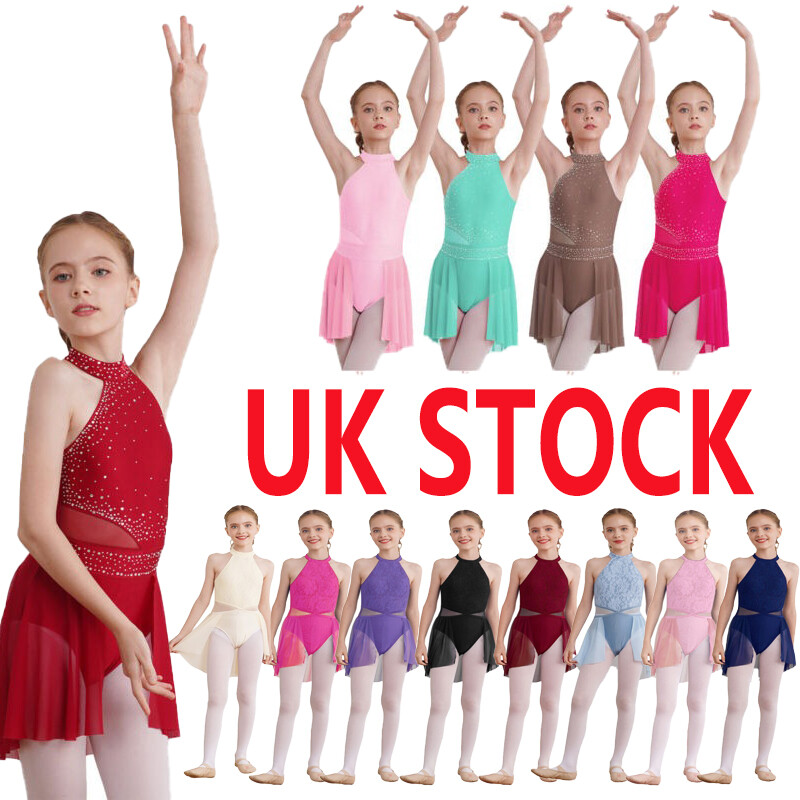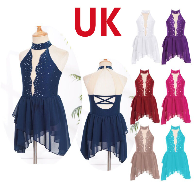 UK Girls Skate Dress Lyrical Ballet Dance Costumes Rhinestones Leotard Dancewear