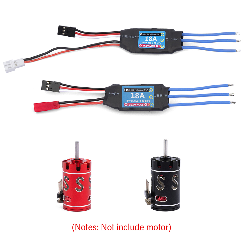 1. Parameters: ESC Support 2S 7.4V, Continuous Current: 18A, Burst Current: 40A, Receiver Plug:JR Plug Male,Power Plugs: JST Plug Female.