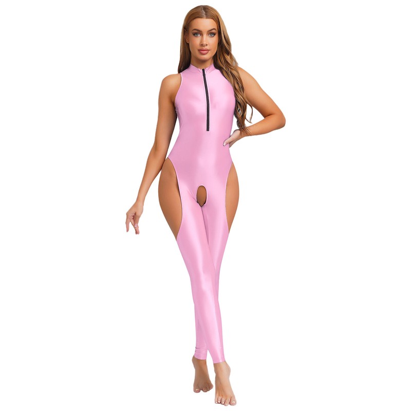 The open-crotch and thigh cut-out details are daring and fashionable, showcasing a bold and confident style that stands out.