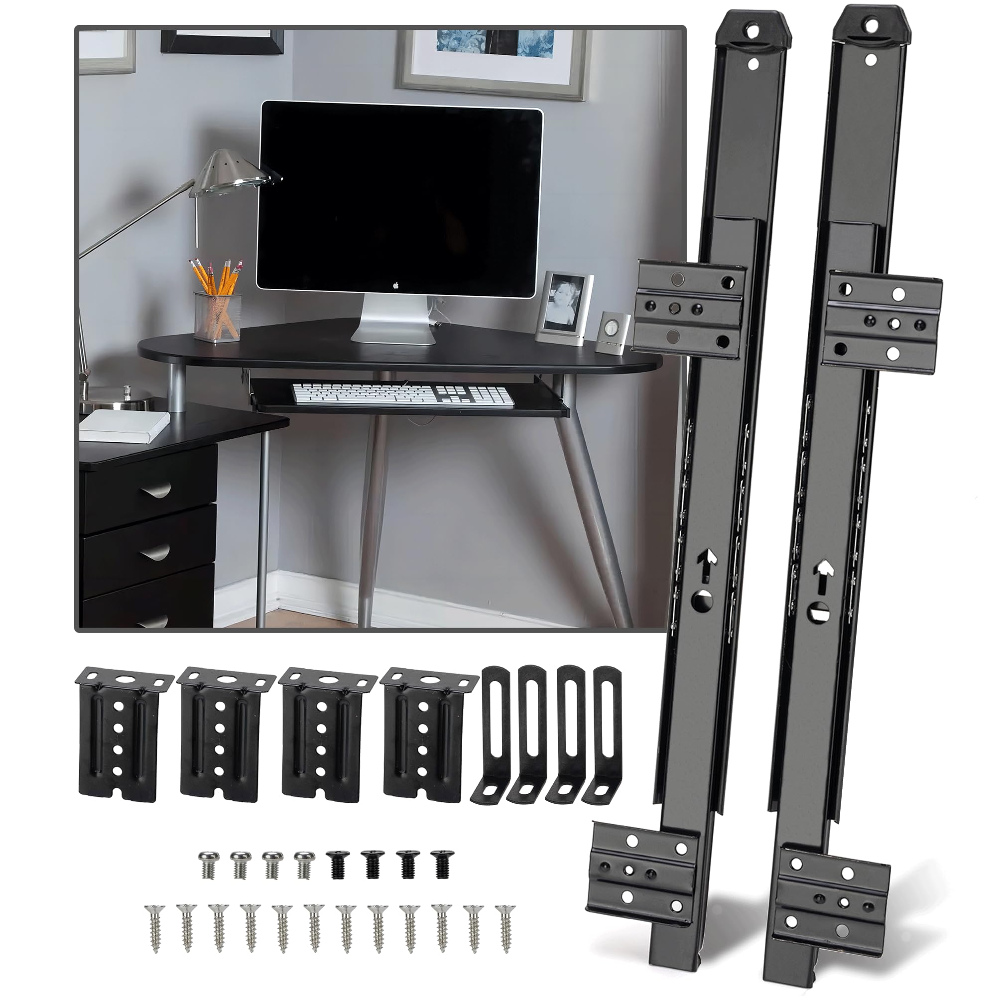 【HIGH-QUALITY MATRIAL】Create your own custom sliding shelf! Made of heavy duty cold-rolled steel construction with a black powder coat finish, our keyboard slides are smooth, quiet, and stable in motion, making them stronger, more durable, and longer lasting than ordinary keyboard slides.