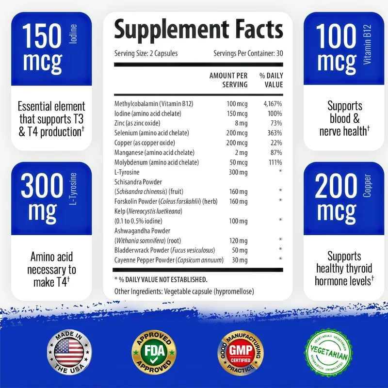 Unser Schilddrüsenpräparat ist speziell mit 14 Vitaminen, Mineralstoffen und Pflanzenextrakten formuliert, um Ihre Schilddrüse mit den Nährstoffen zu versorgen, die sie benötigt, damit Sie sich energiegeladener fühlen und Stoffwechsel, Energie und Immununterstützung ankurbeln.