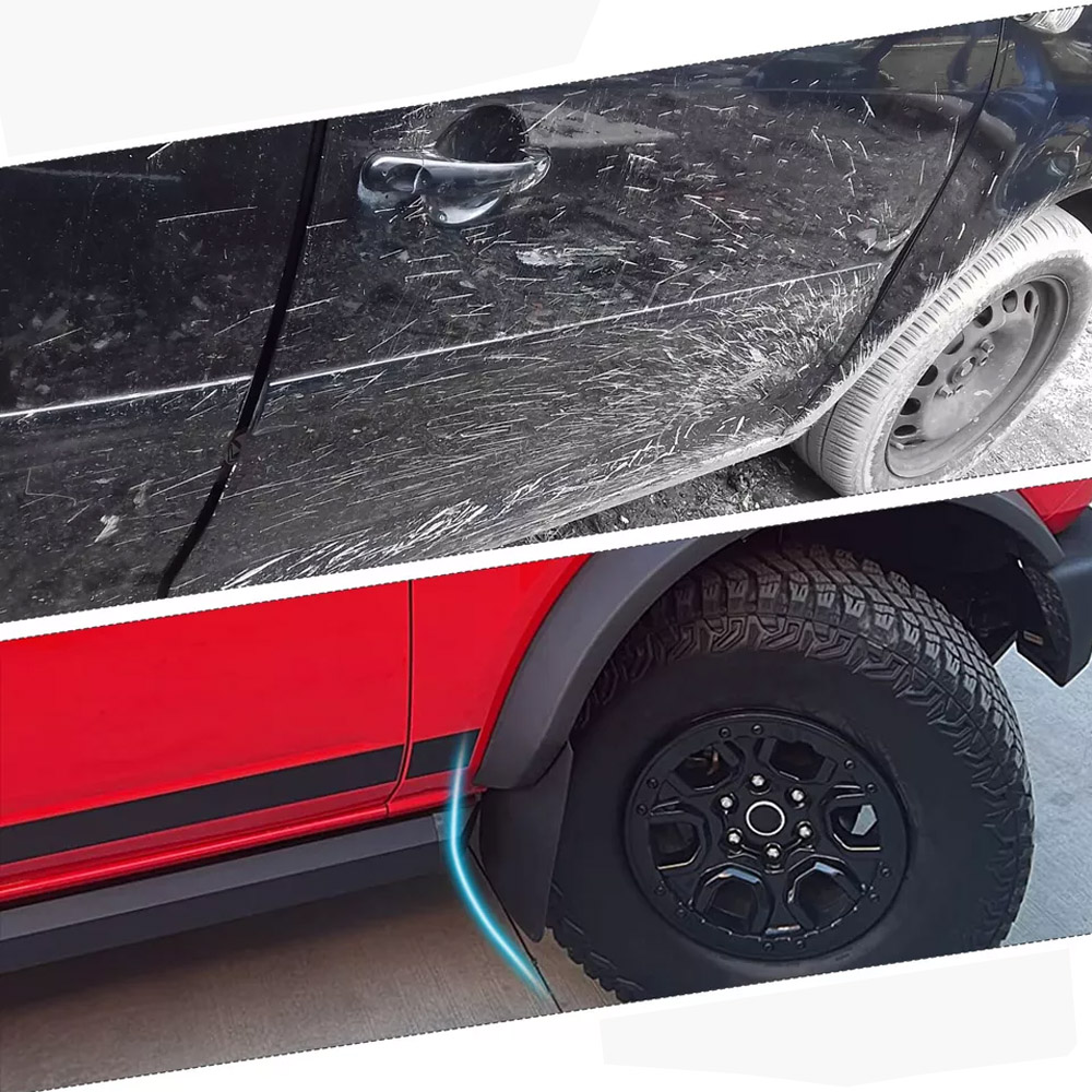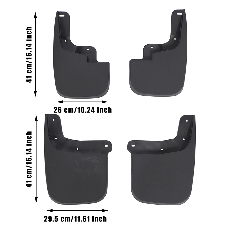Description: Our Contoured design complements vehicle lines and gives excellent protection, Deflect mud, snow and ice away from lower body panels. Heavy-duty black plastic construction resists cracking.Injection-molded thermoplastic provides superior strength and durability. Will Protect your vehicle from mud, dirt, snow, gravel and road salt. It can prevent the mud from splashing on the tie rod and ball head to cause premature rust.