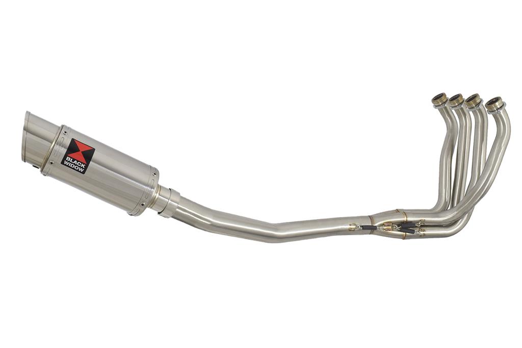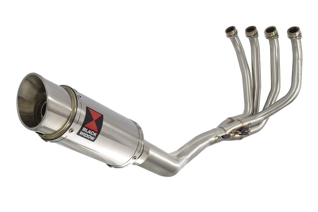 Exhaust System Kawasaki ZX12R 2000, 2001, 2002, 2003,2004, 2005, 2006 models - Gaskets, silencer mounting straps, and clamp are included. - Downpipe Material : 304 grade stainless steel. - Silencer Material : 304 Grade Polished Stainless Steel. - Silencer Body Length excluding tips = 200mm - Silencer Diameter = 100mm - Silencer Part number: 200SS - Silencer Baffle / DB killer is removable. - See the Silencer Specifications Tab for length noise levels. - Two year Black Widow warranty.