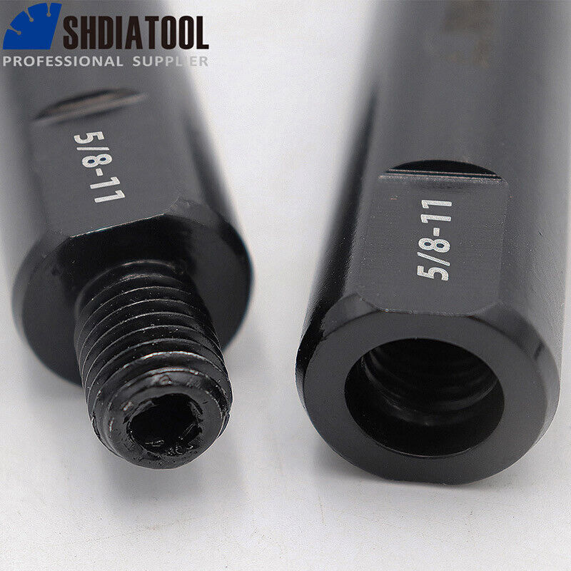 Item: SHDIATOOL 1pc Core Bits Extension Rod Quantity: 1pc only Specification: M14: Core Bits Extension Rod,M14 Male thread to M14 Female thread, Total length 118MM, 5/8-11:Core Bits Extension Rod,5/8-11 Male thread to 5/8-11 Female thread, Total length 118MM, Color: black Application: Diamond core bit extension rod, Work status for connecting with diamond core bits. Could be used for M14 or 5/8-11 inner connector diamond drill bits Can fit M14 or 5/8-11 tools to your machine through this Adapter, Good quality steel, long life. The shaft is hollow to allow water flow during wet applications. ==============The End==============