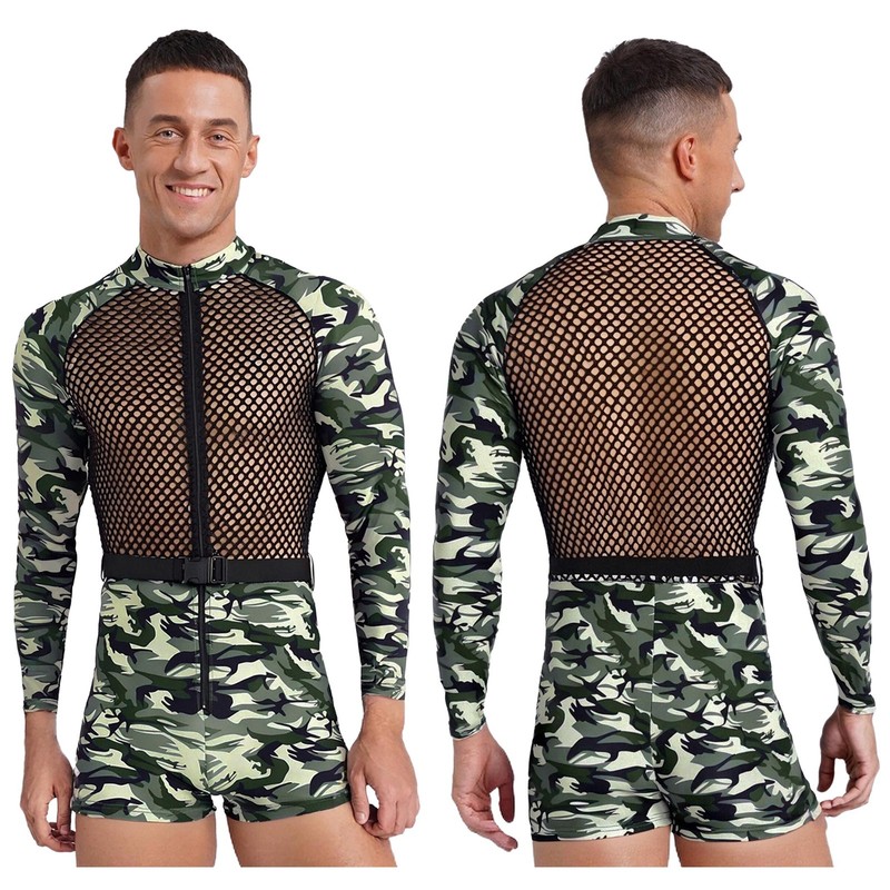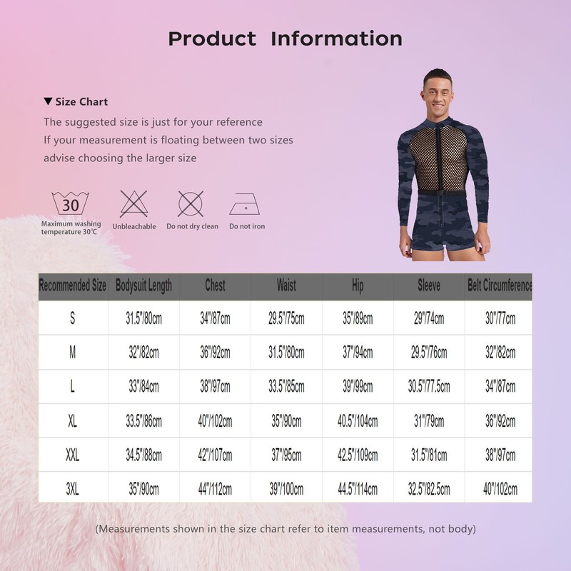 Set Include: 1Pc Men’s Bodysuit, 1Pc Belt
