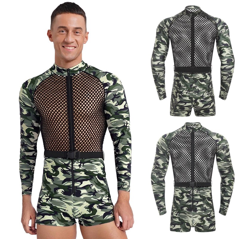 Crafted from a blend of nylon and spandex, this bodysuit offers excellent stretch and flexibility, ensuring a comfortable and unrestricted fit for men.