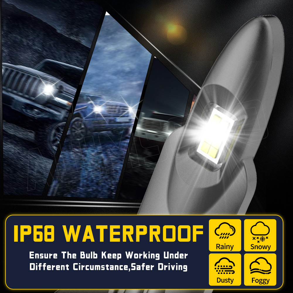 About this item:✅300% Brighter✅Superior light chips producing 6500K white light.The irradiation distance is up to 100 meters. 3 times brighter than your original bulb.✅360° Adjustable light✅Newly upgraded mounting clip. No modifications are required, no additional special adapters are needed, and various installation problems are avoided.✅1:1 Small Size✅1:1 size design with your original light. Mini volume, no need to worry about compact installation space. plug & Play, also fit for ATV/UTV powersports light, 5min quick installation.✅IP68 Waterproof✅6063 aviation aluminum fuselage provides stable heat dissipation, IP68 waterproof grade, no fear of rainstorm and blizzard, safe travel, easy to cope with extreme weather and environment.✅99.9% compatibility✅AUIMSOCO light bulbs are compatible with 99.9% of vehicle computer systems without error, flicker or does not work