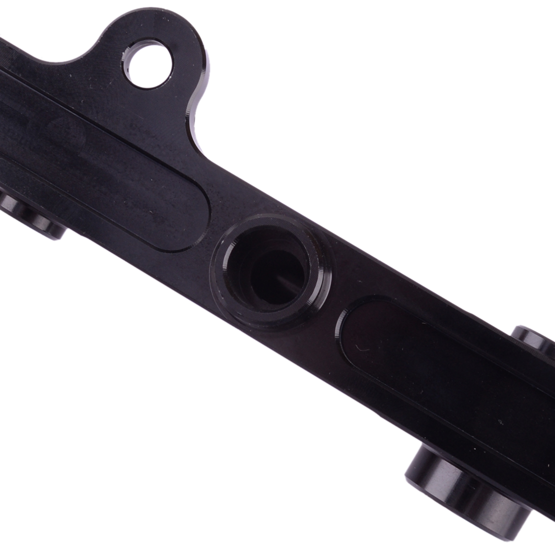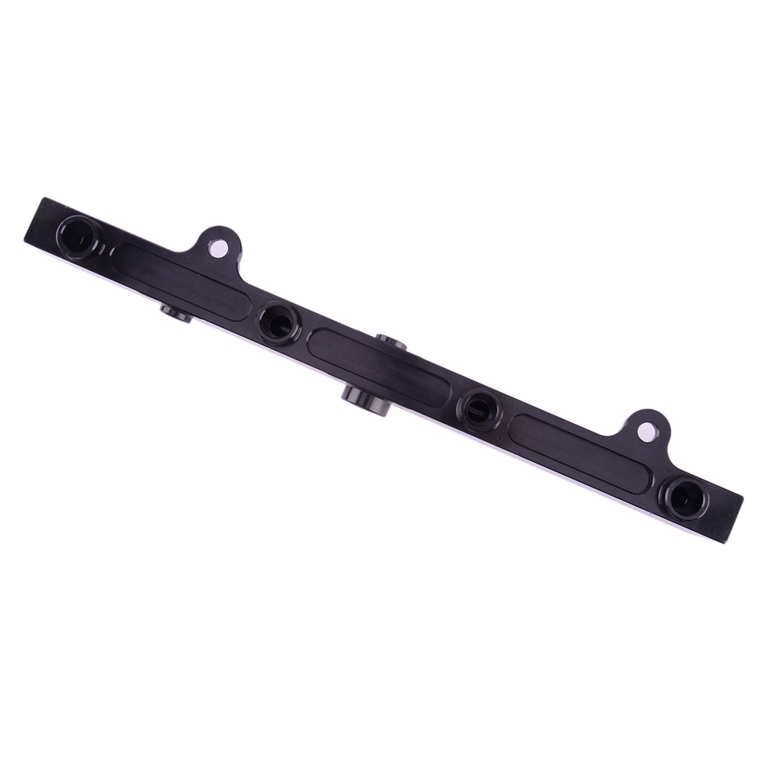 5) High Volume fuel rails feature a 1/2-inch fuel bore to support fuel flow for applications up to 1,000 horsepower. This large bore also dampens back-pressure pulses created by larger injectors and works perfectly with stock injector sizes. An additional 1/8th NPT port is included to accommodate a fuel pressure gauge. A custom fuel line fitting is included for the factory fuel line, and the ends of each rail are pre tapped to accept -6 AN or 9/16''x18 fittings for users who want to use custom fuel lines.