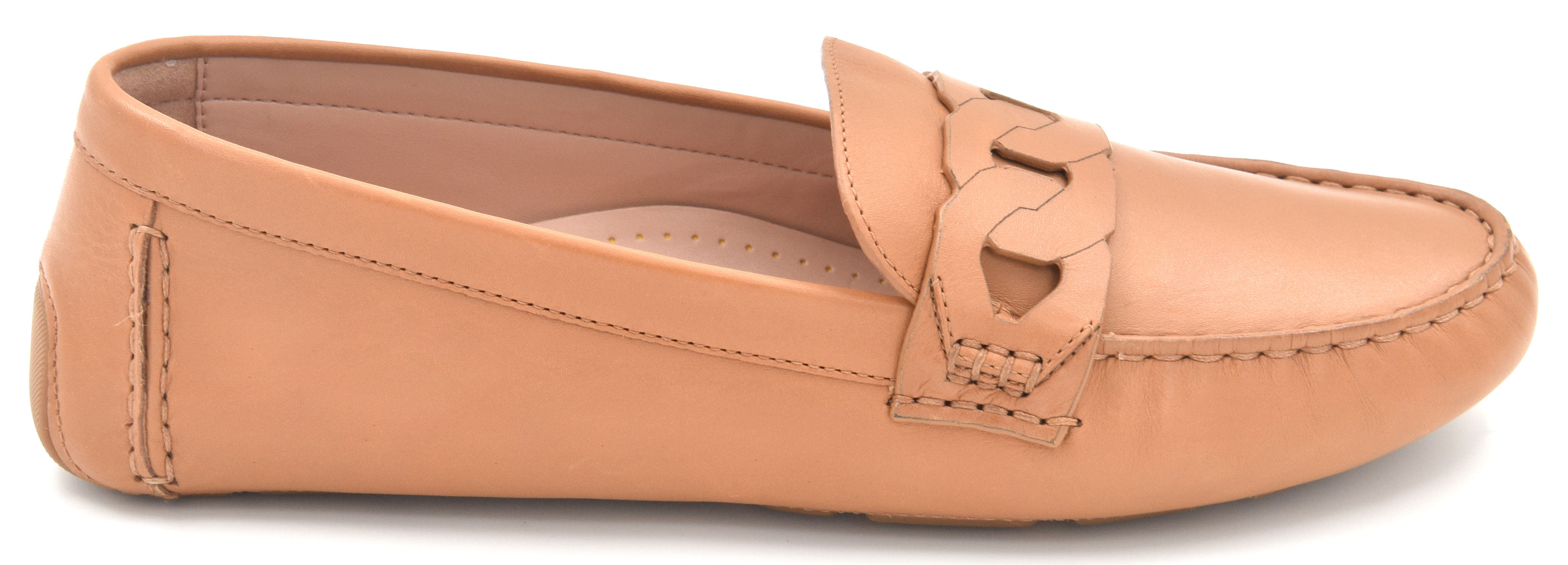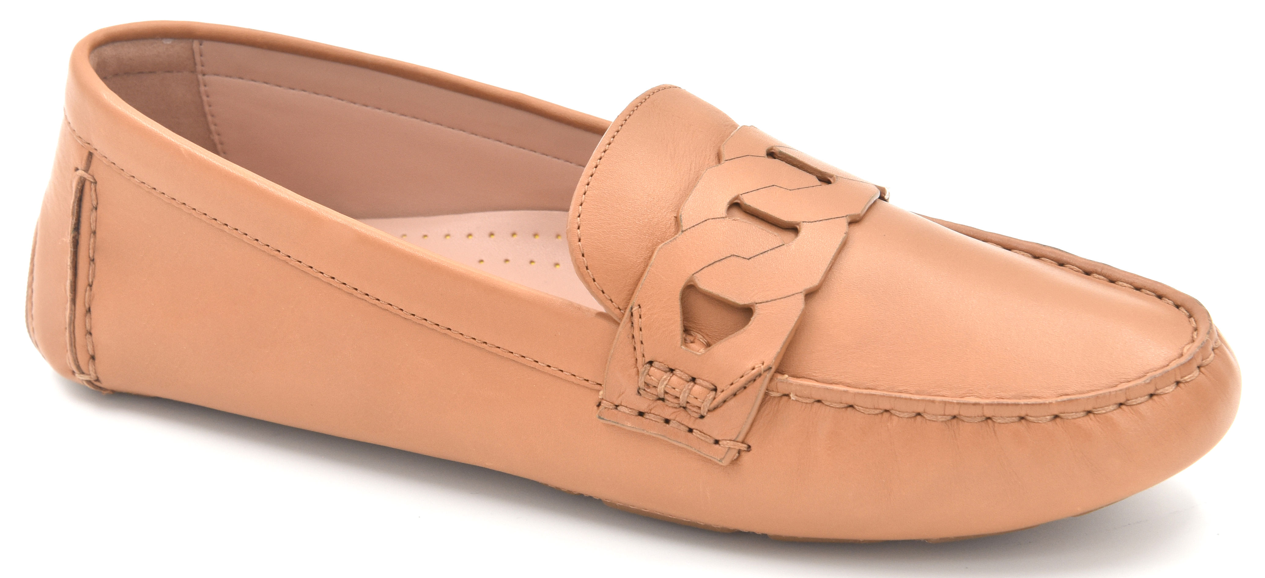 Step into a new look with our Evelyn Chain Loafer a modern take on our classic driving loafer with laser-cut leather chain detail. Designed for all-day comfort, this soft slip-on is super breathable and flexible. It combines a traditional driver outsole with rubber pods for traction and durability. Soft, comfortable, and incredibly versatile, it's a perfect fit for a leisurely Sunday drive or tackling your weekday commute.