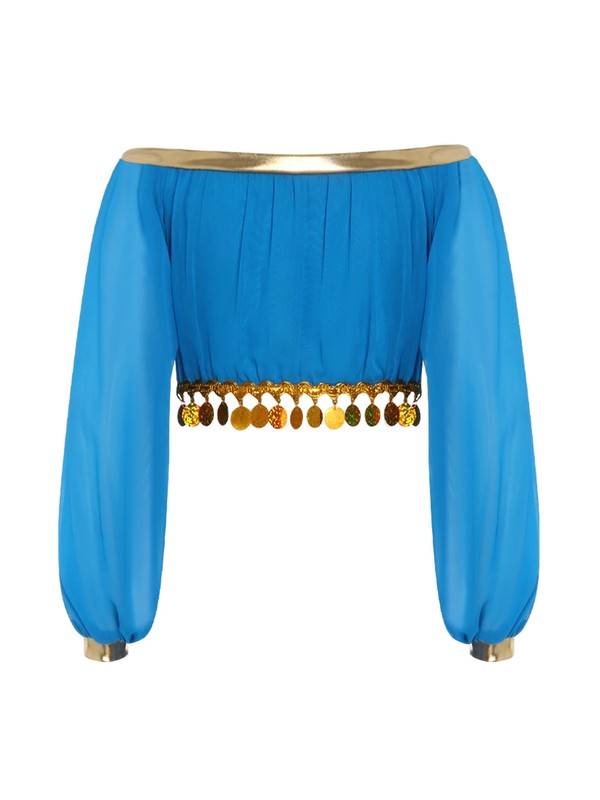 Long sleeves provide a bit of coverage while still maintaining the cute and playful vibe of the belly dance style.