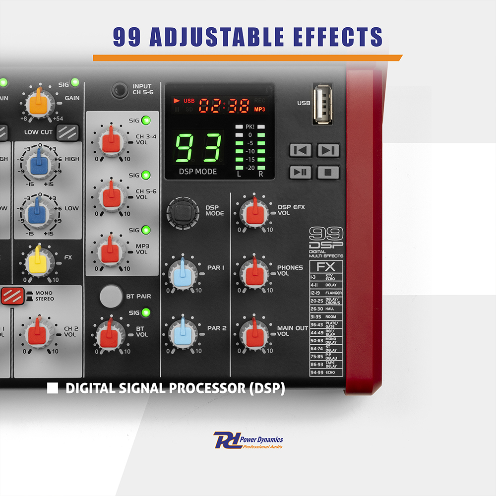 PDM-Y801 PA Mixer 8 Channel with Bluetooth, USB, & DSP Effects - Pro Sound