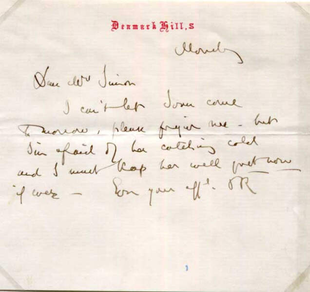 I can`t let Sona come to [illegible], please forgive me - but I`m afraid of her catching cold and I must keep her well [...]"
