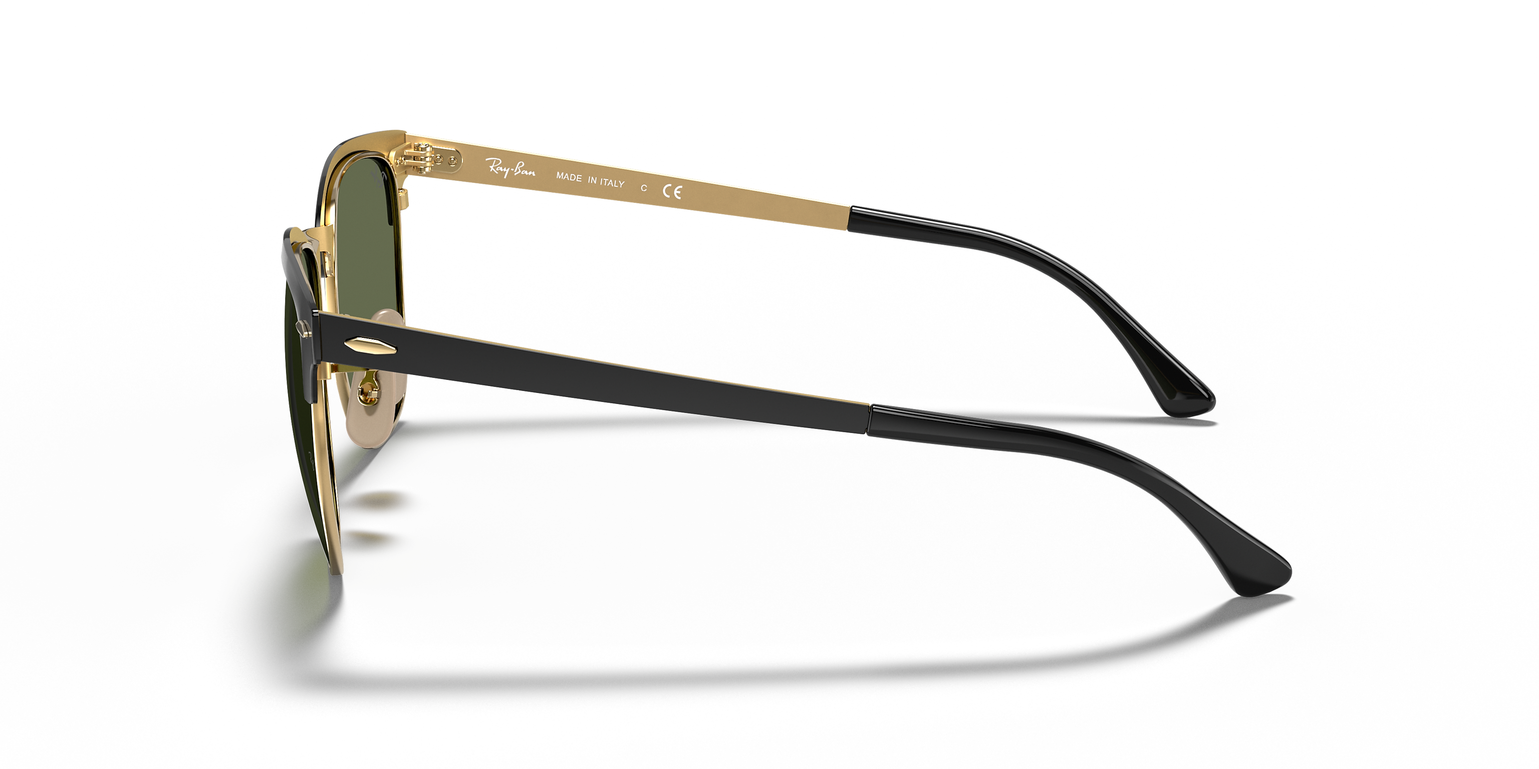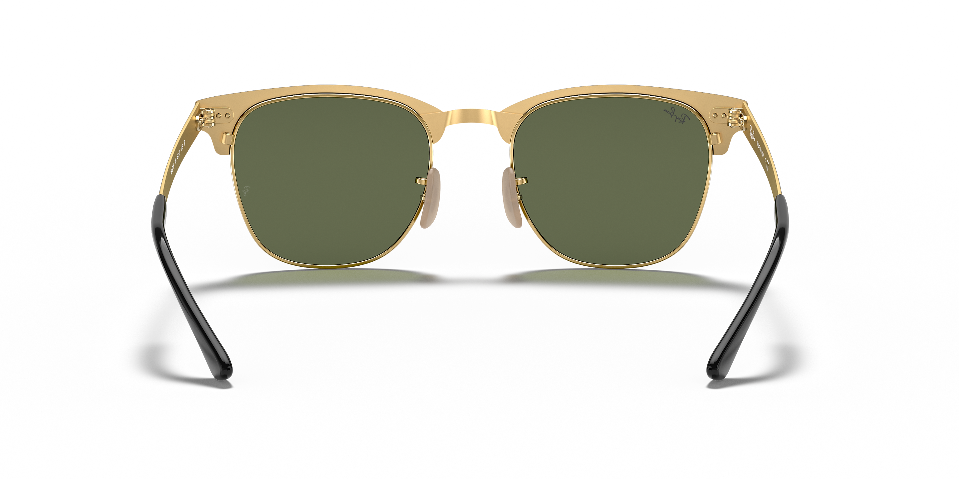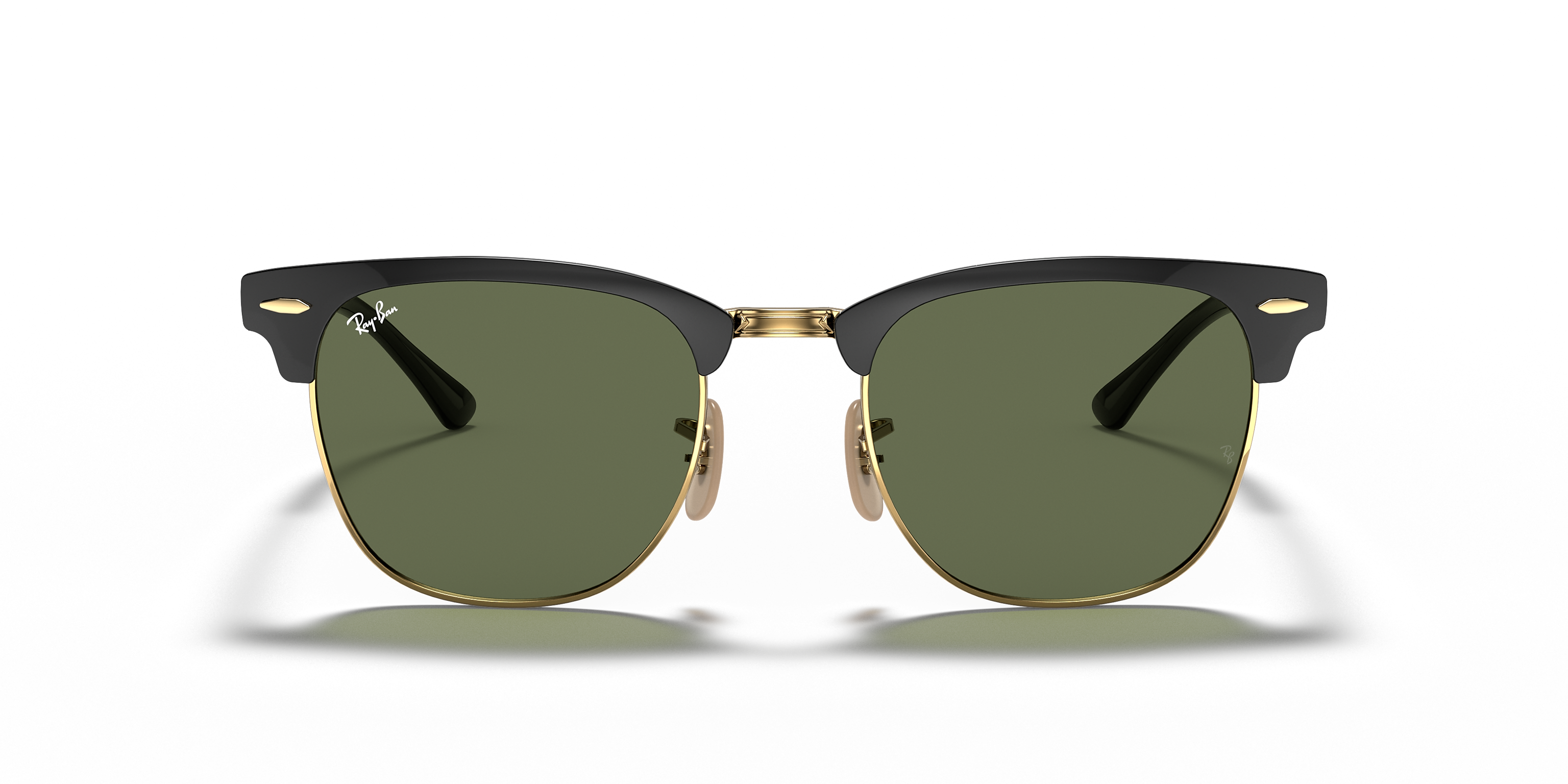 Elevate your eyewear collection with the Ray-Ban Clubmaster Metal Polished Black On Gold with Green Classic G-15 51mm Sunglasses — a perfect harmony of heritage and modern sophistication.