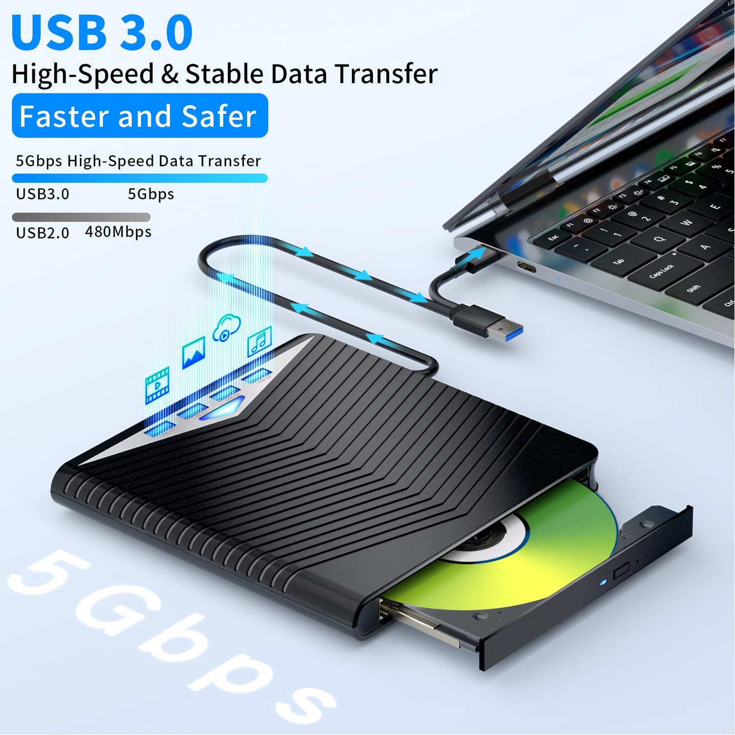 External CD DVD Drive CD/DVD Burner USB 3.0 Disk Drive for PC Windows /10/8/7