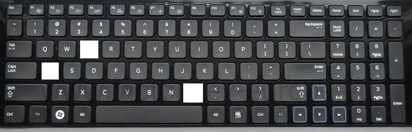 2 Клавиши окрашенные в белый цвет отсутствуют.