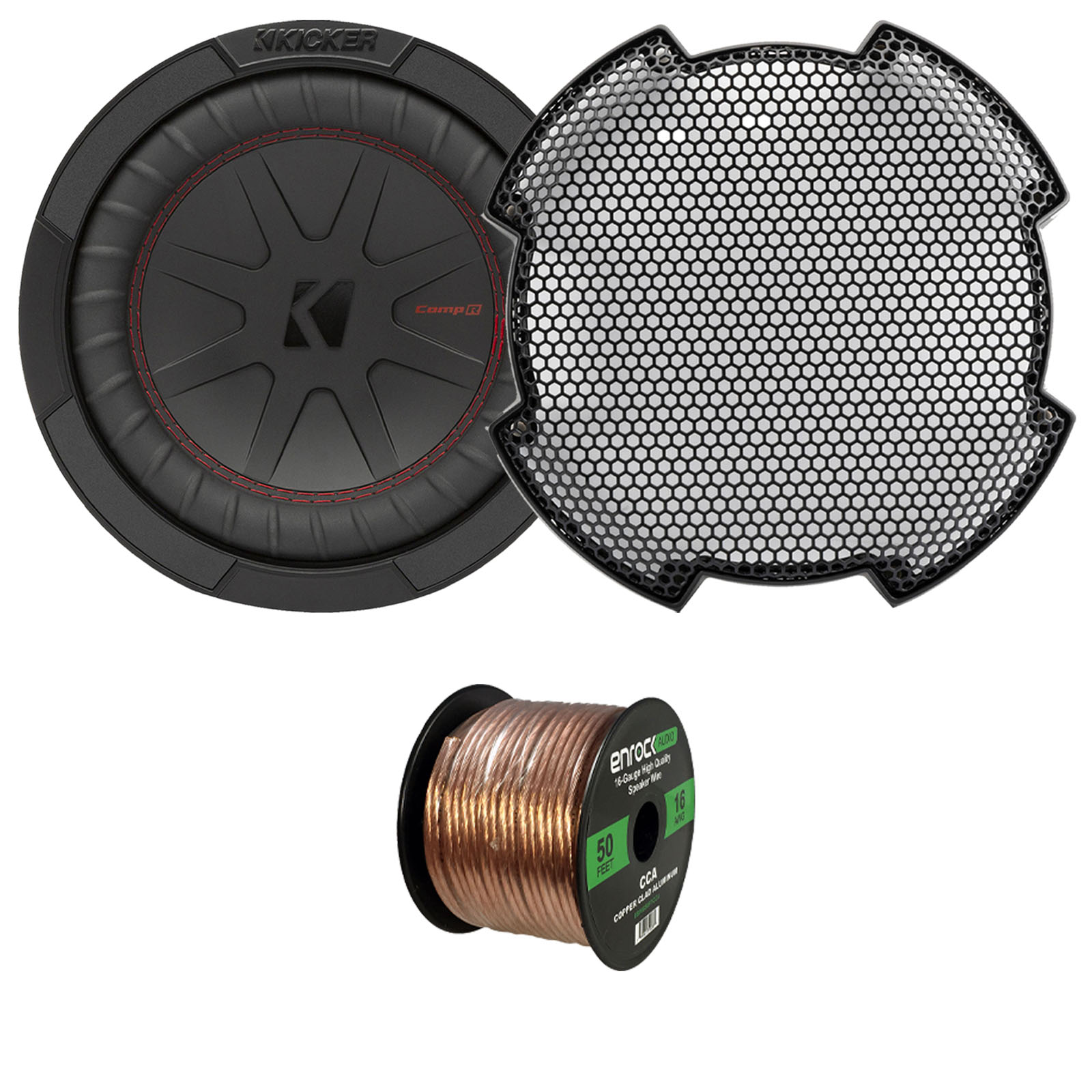 PACKAGE BUNDLE INCLUDES: Kicker 48CWR82 CompR 8" 600 Watts Max Power 2 Ohm Dual Voice Coil Car Audio Subwoofer (Single), 8" Round Steel Mesh Subwoofer Grille, 50 Feet 16 Gauge Speaker Wire